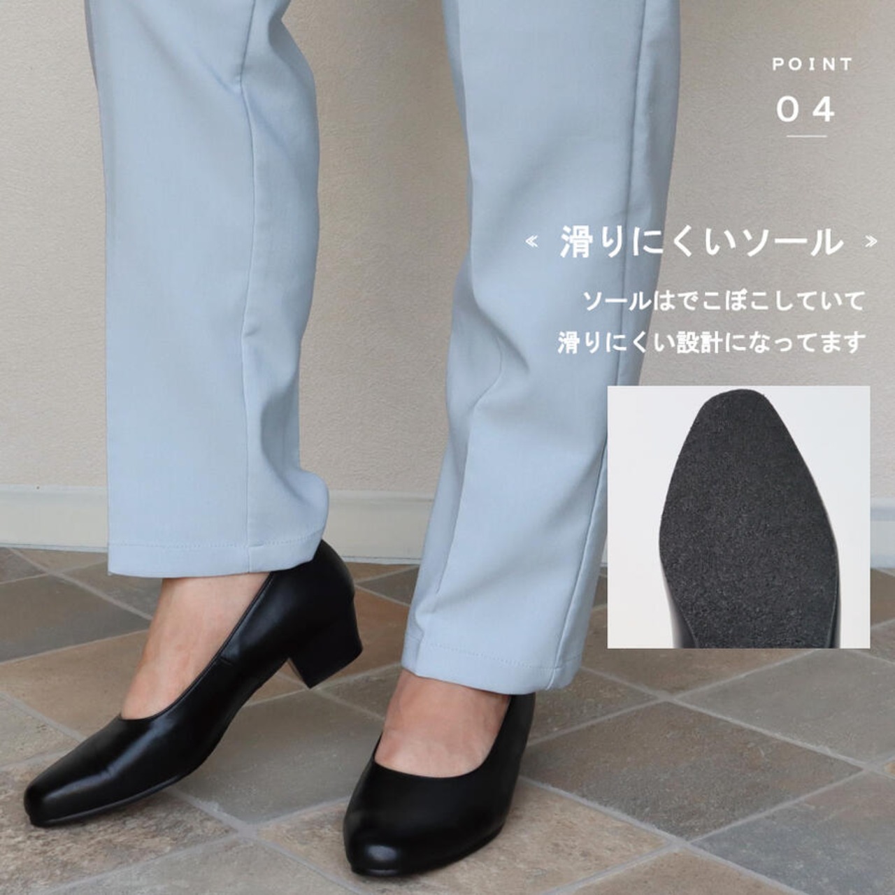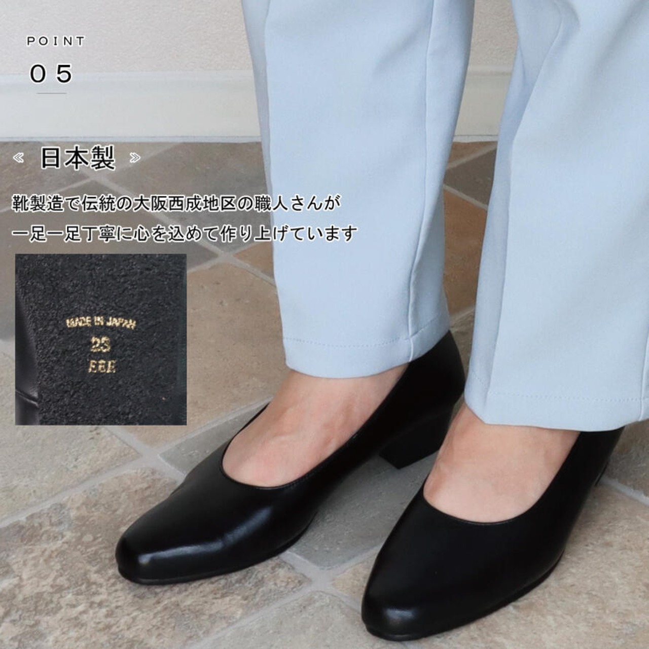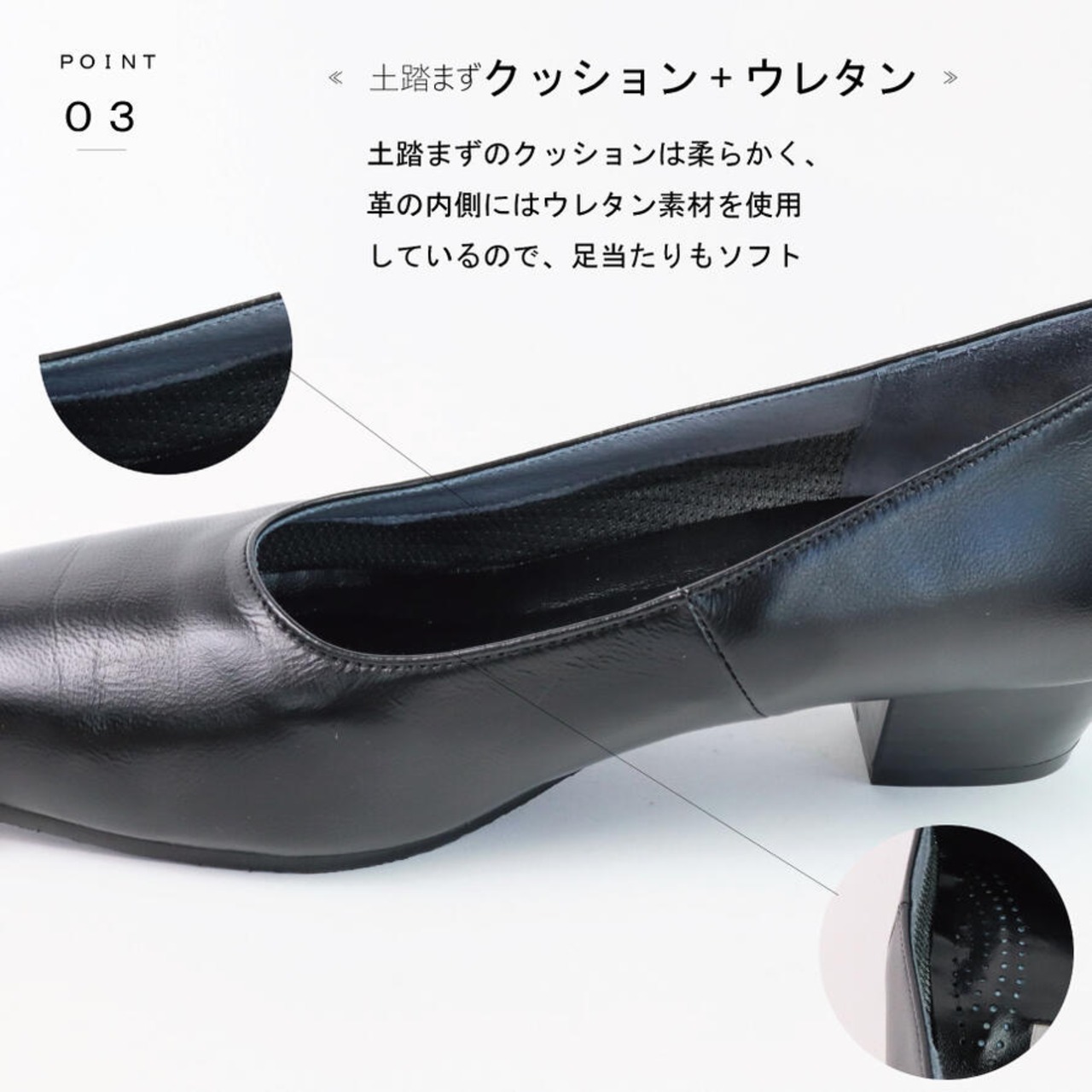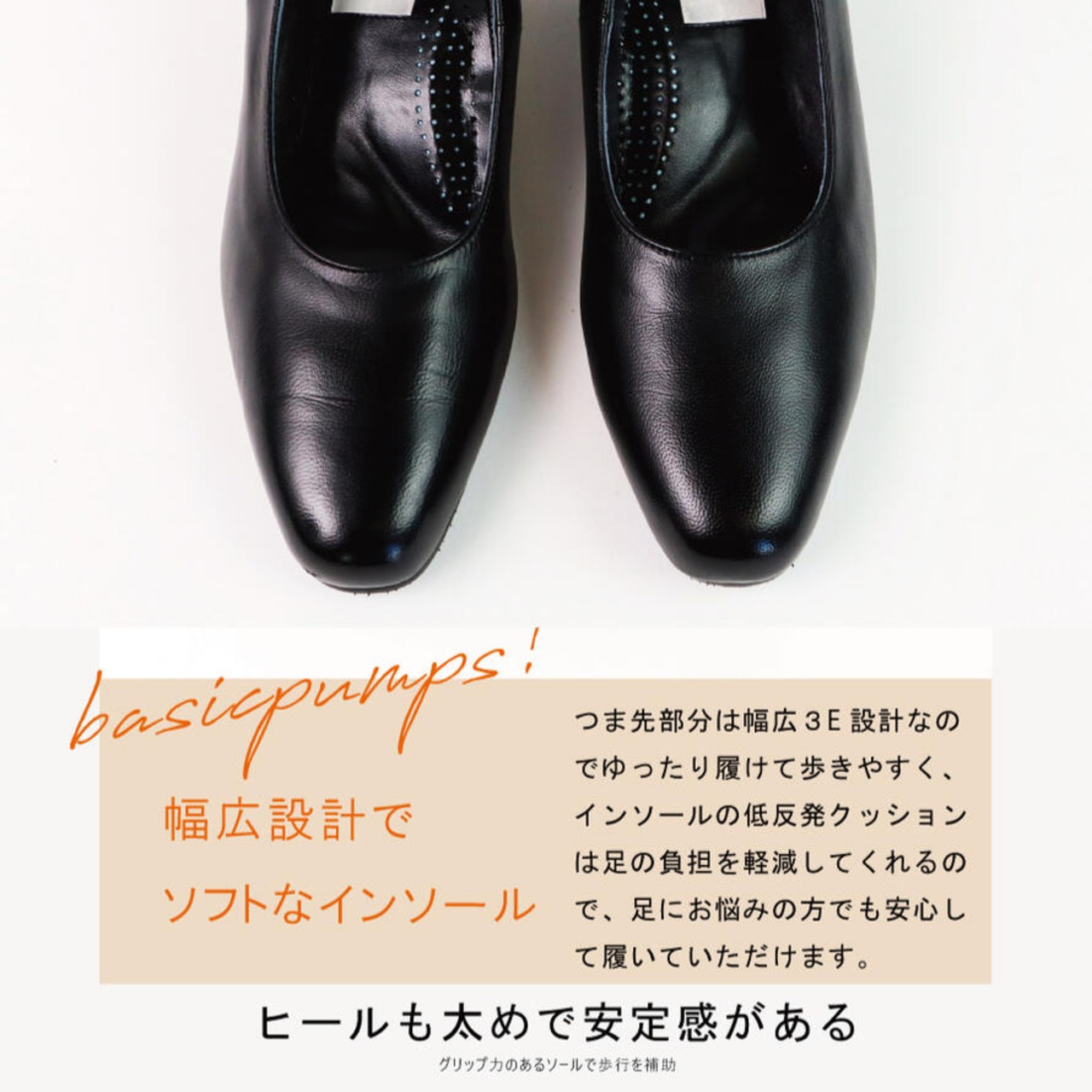 【FIZZ REEN】 ローヒール フォーマル パンプス 3E レザー 疲れない 本革 シンプル おしゃれ 靴 黒 ヒール 3センチ 50代 甲高 幅広 外反母趾 歩きやすい