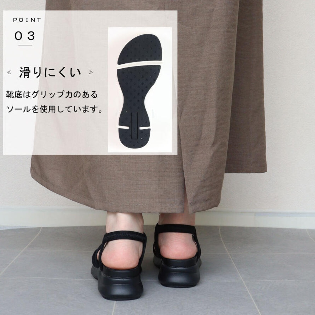 ・弾力のあるクッション性と4cmの厚底で地面からの衝撃が伝わりにくい