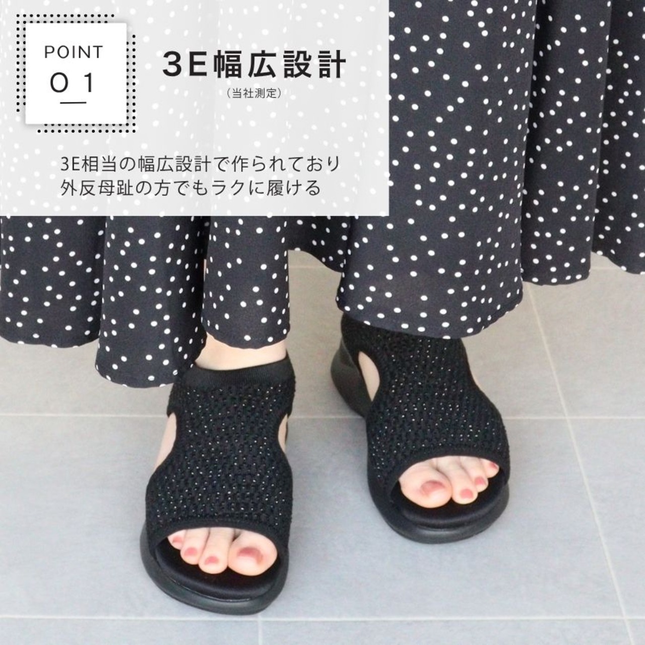 ・3E相当の幅広設計で作られており、外反母趾の方でもラクに履ける