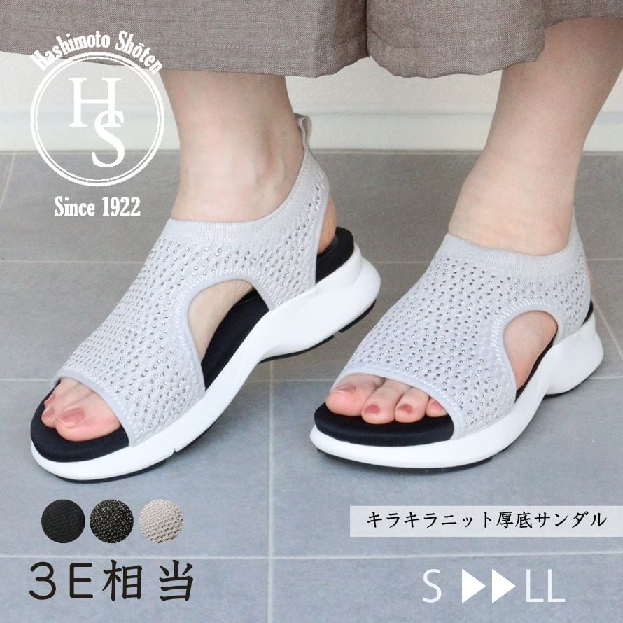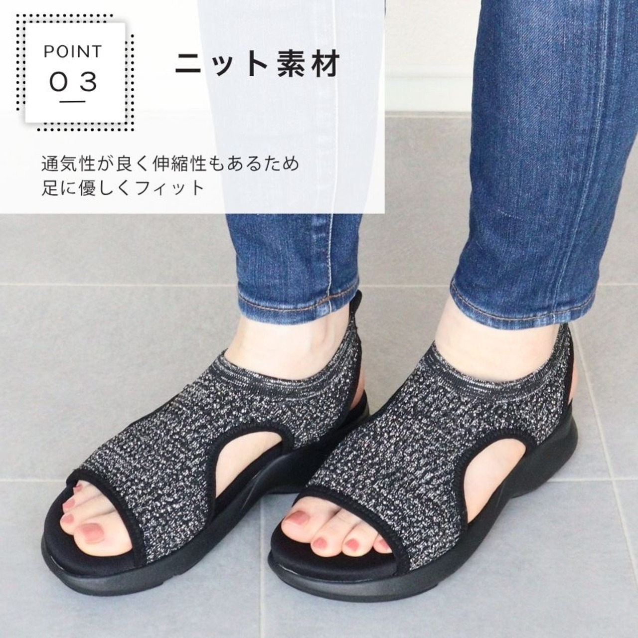 【厚底スポサン】キラキラ ニット 厚底サンダル 歩きやすい 軽量 美脚効果 スポサン レディース 春夏 痛くない 大人可愛い 履きやすいサンダル 3E 幅広 厚底 ニットサンダル 柔らかい ラメ