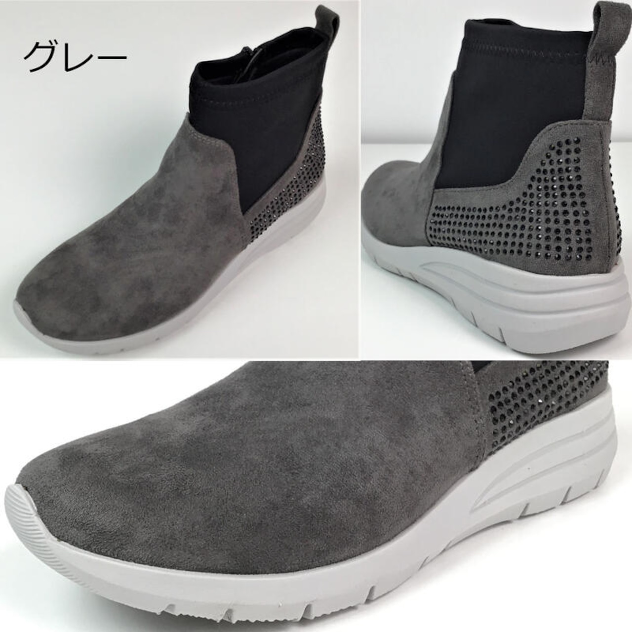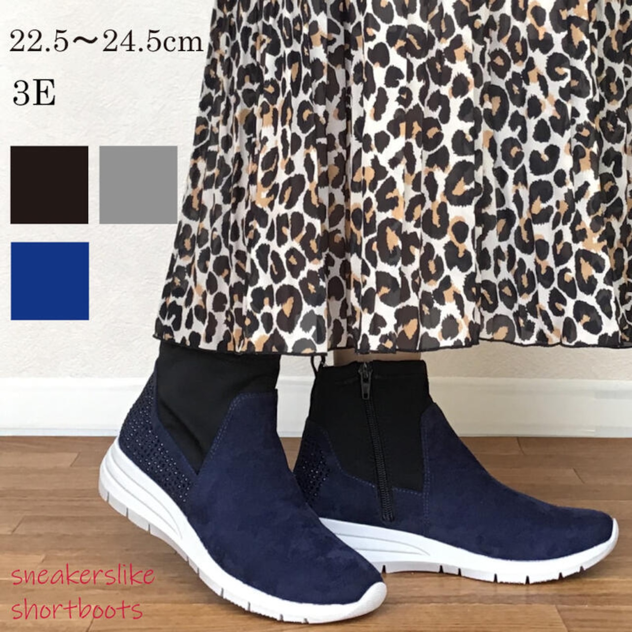 スニーカー みたいな ショートブーツ 軽量 ブラック グレー 3E レディース ファスナー チャック 半額