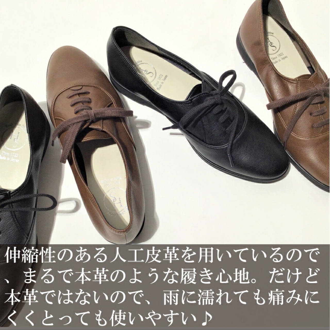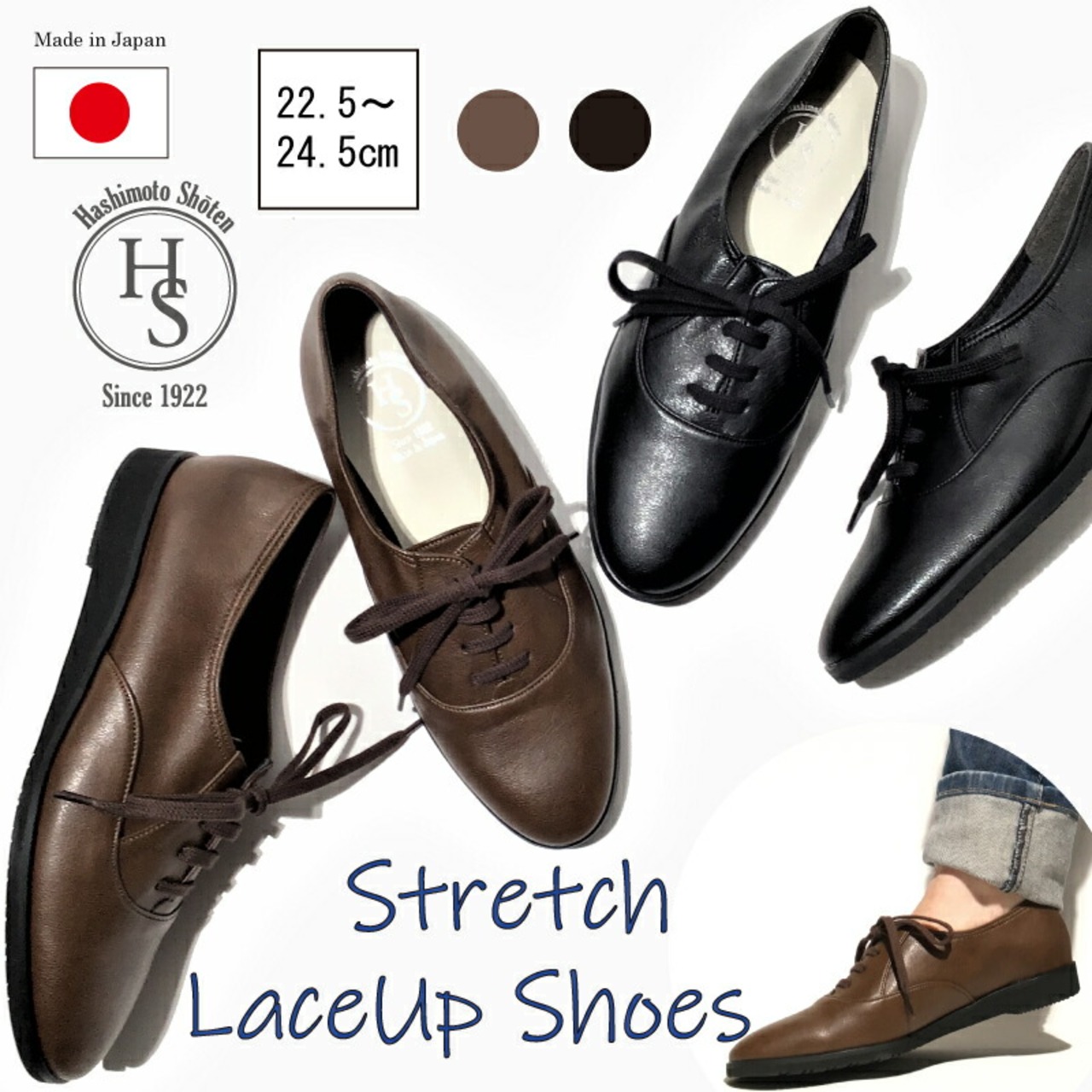 【日本製】 HS ストレッチ レースアップ シューズ レディース 1cm ヒール ブラウン ブラック 半額