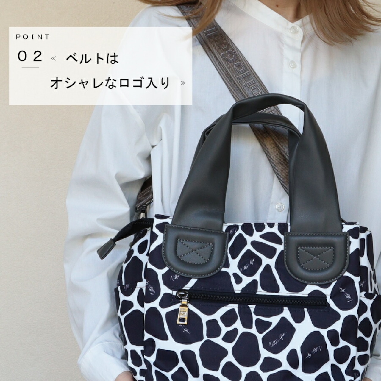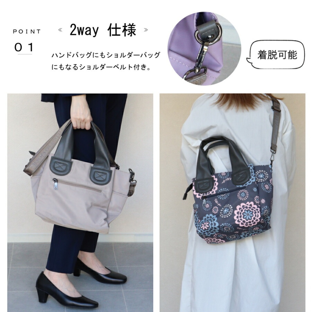 ・ハンドバックにもショルダーバックにもなる2way仕様でショルダーベルト付き