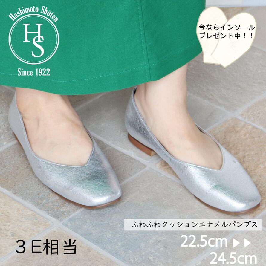 【日本製】 HS ふわふわ フラットシューズ クッション レディース 幅広 Vカット フラットパンプス 痛くない 外反母趾 ブラック 3E 相当 歩きやすい ぺたんこ 疲れない おしゃれ 通勤 通学 軽量 柔らかい クッション性 合皮 大人可愛い シンプル