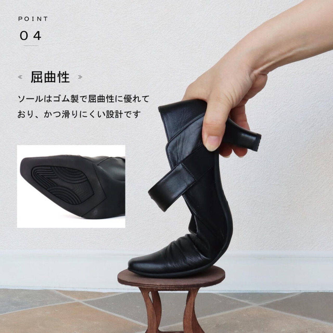 ・ゴム製のソールは屈曲性に優れておりかつ滑りにくい設計です