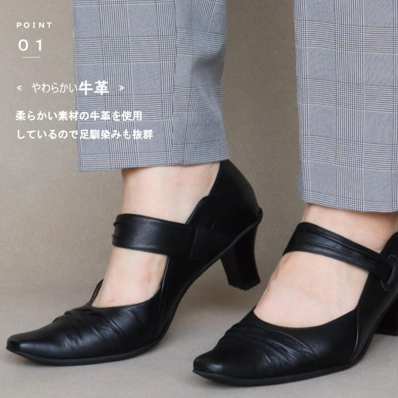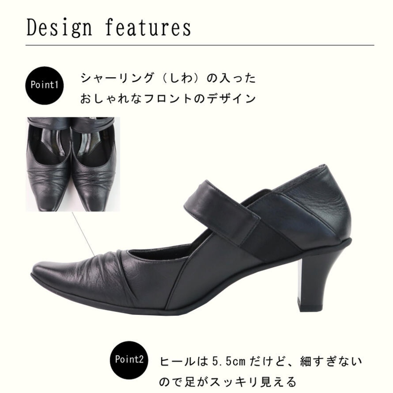 【FIZZ REEN】 フォーマル ベルト パンプス 3E レザー 疲れない 本革 シンプル おしゃれ 靴 黒 ヒール 5センチ 50代 甲高 幅広 外反母趾 歩きやすい