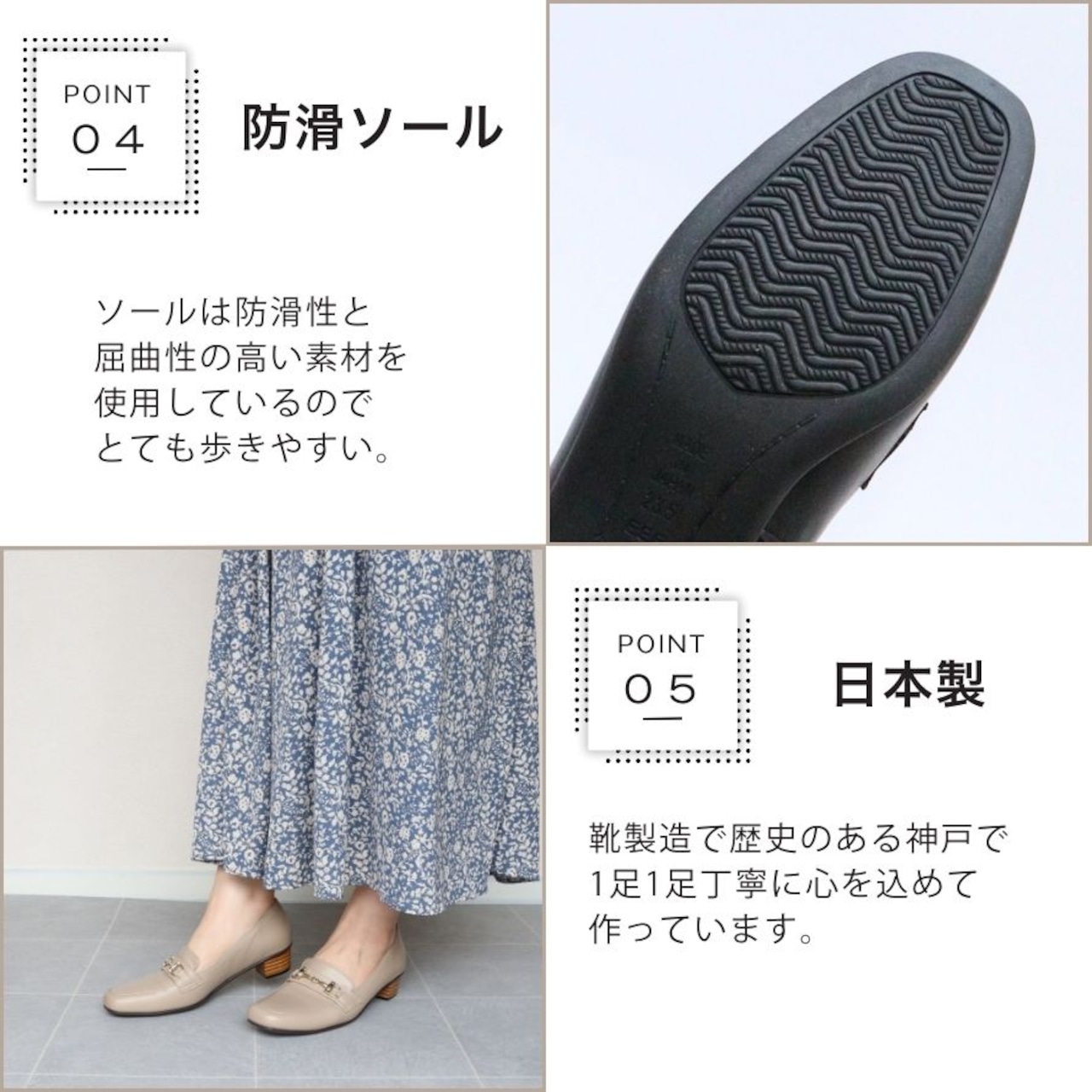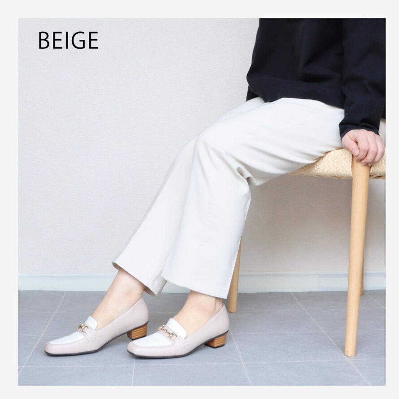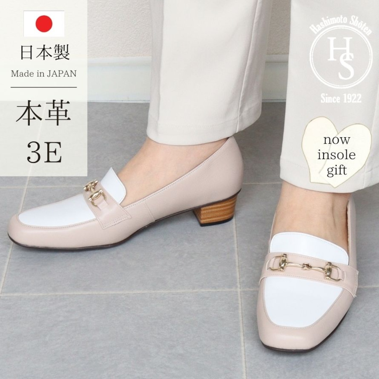 【日本製】 HS ローファー パンプス ベージュ ブラック 3cm ヒール3センチ 幅広 痛くない 本革 柔らかい 3E ぺたんこ