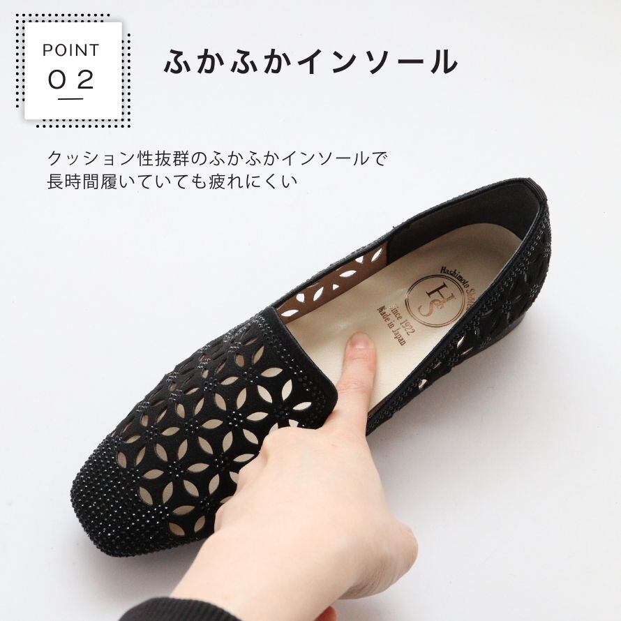 【日本製】 HS パンチング キラキラ ローファー メッシュ スクエアトゥ パンプス レディース フラットパンプス ローヒール 3E 幅広 黒 痛くない フラットシューズ 透け感 夏 ぺたんこ 通気性 軽量 柔らかい パンチングパンプス キラキラパンプス