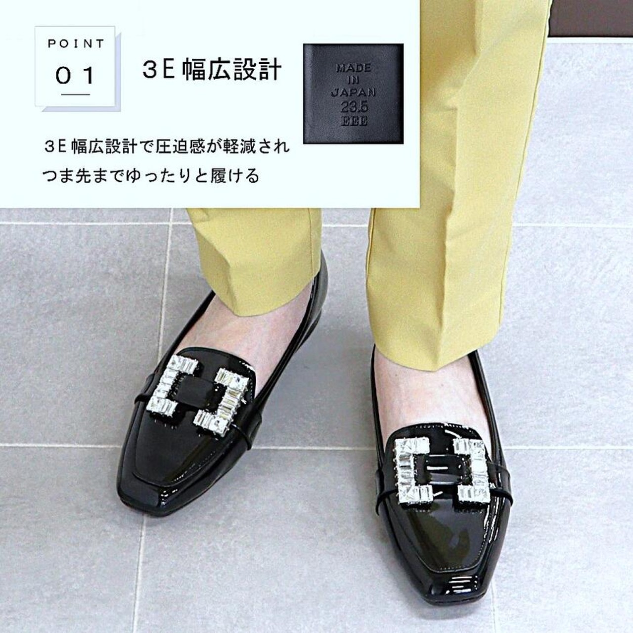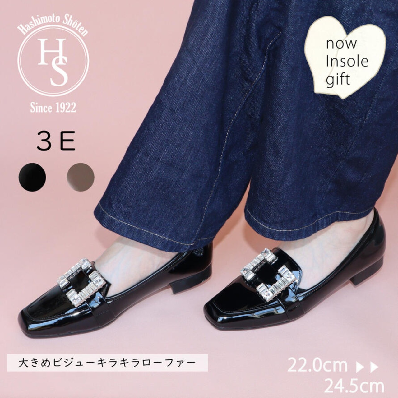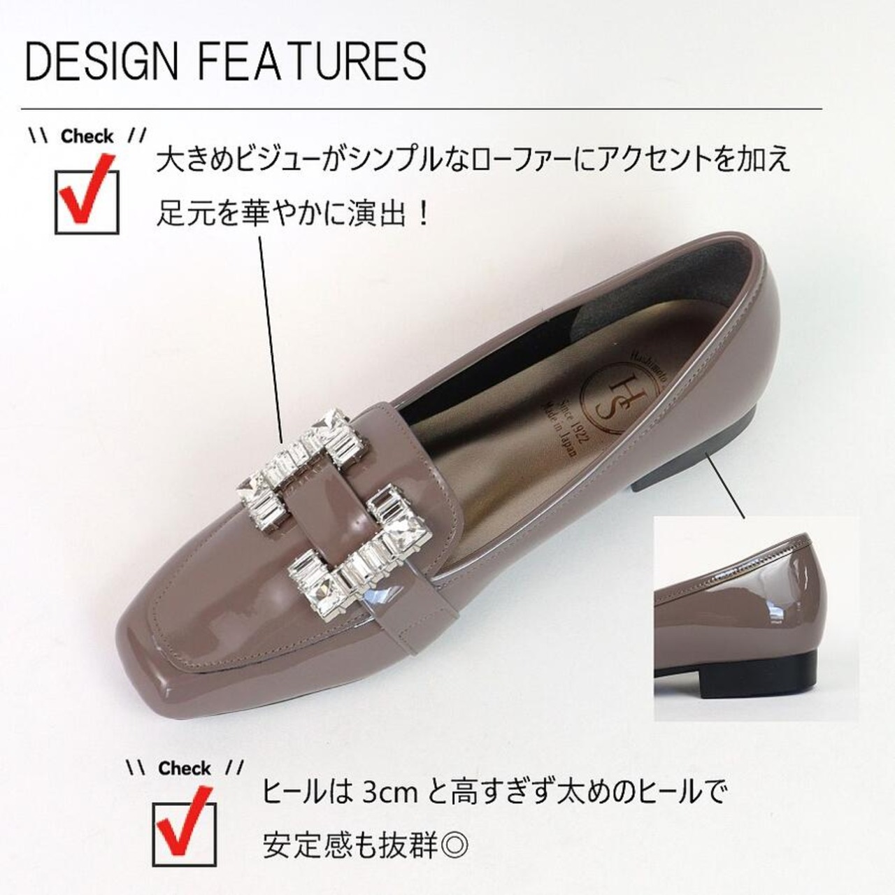 【日本製】 HS 大きめ ビジュー キラキラ ローファー パンプス レディース ヒール 3E 歩きやすい 痛くない 50代 エナメル
