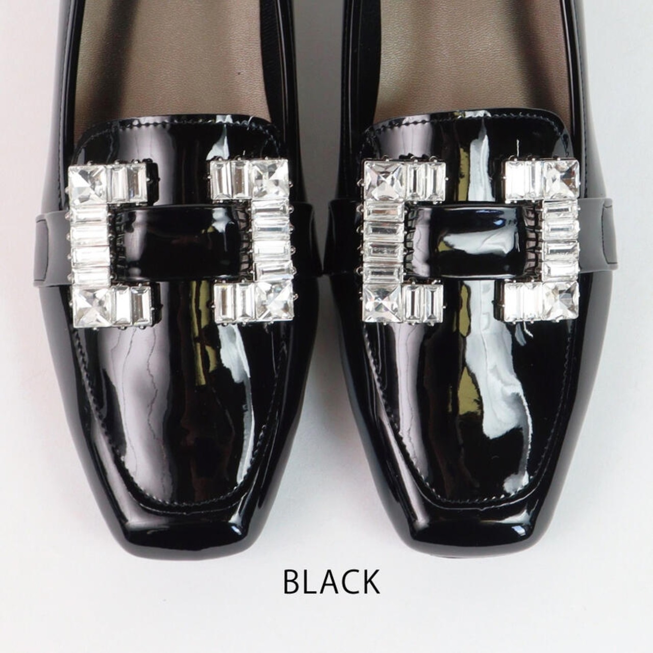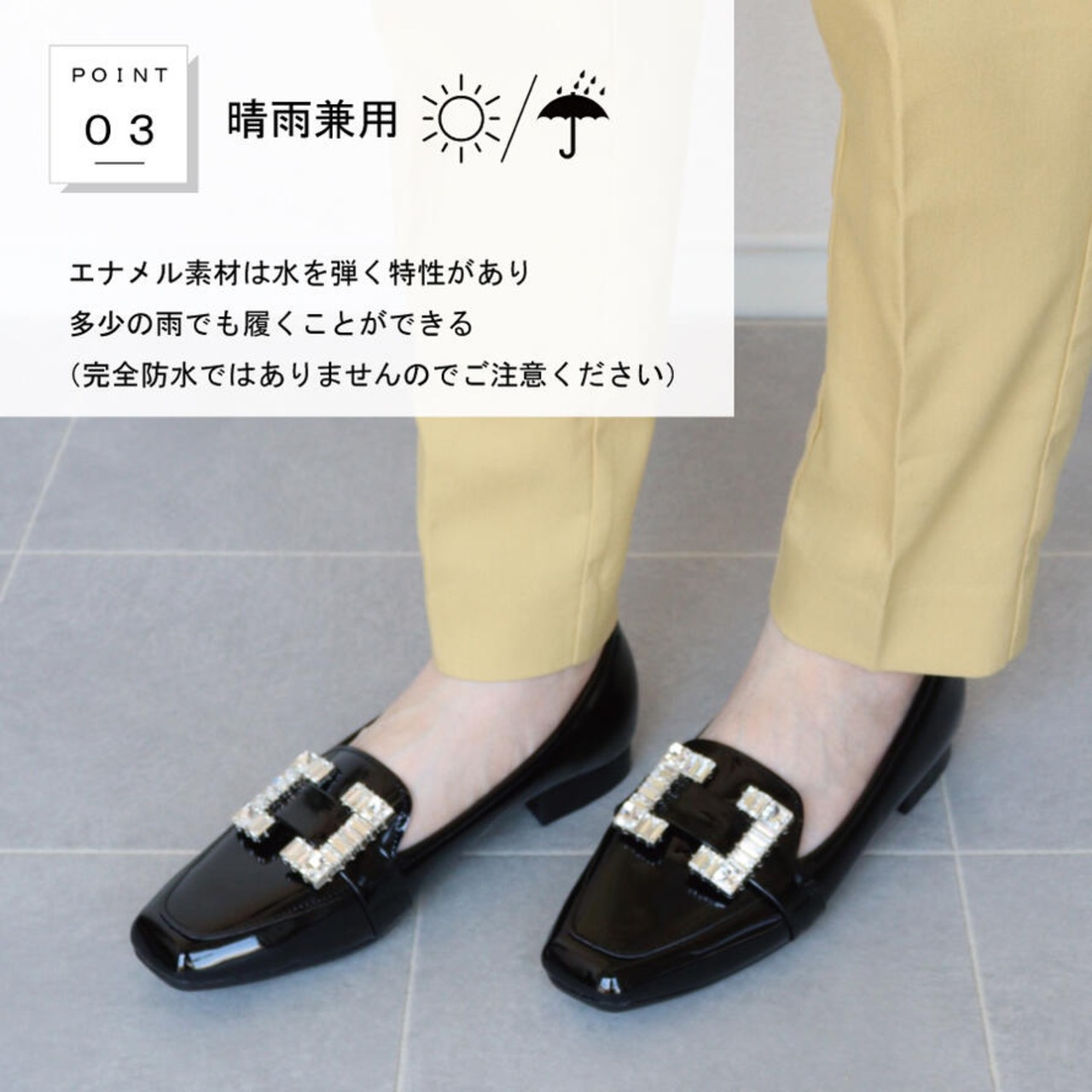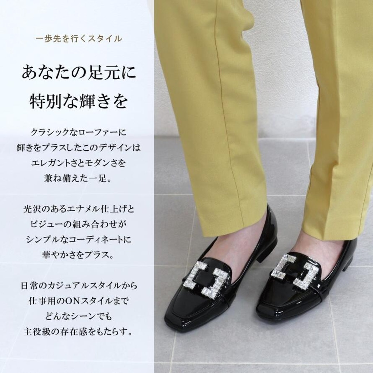 【日本製】 HS 大きめ ビジュー キラキラ ローファー パンプス レディース ヒール 3E 歩きやすい 痛くない 50代 エナメル