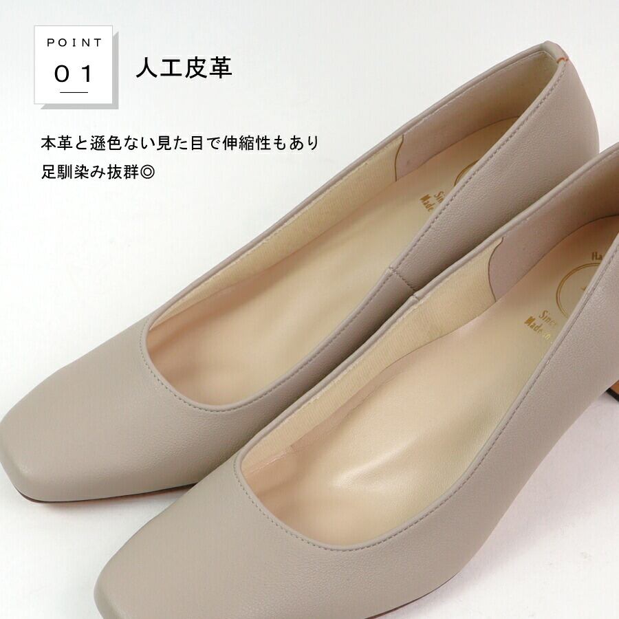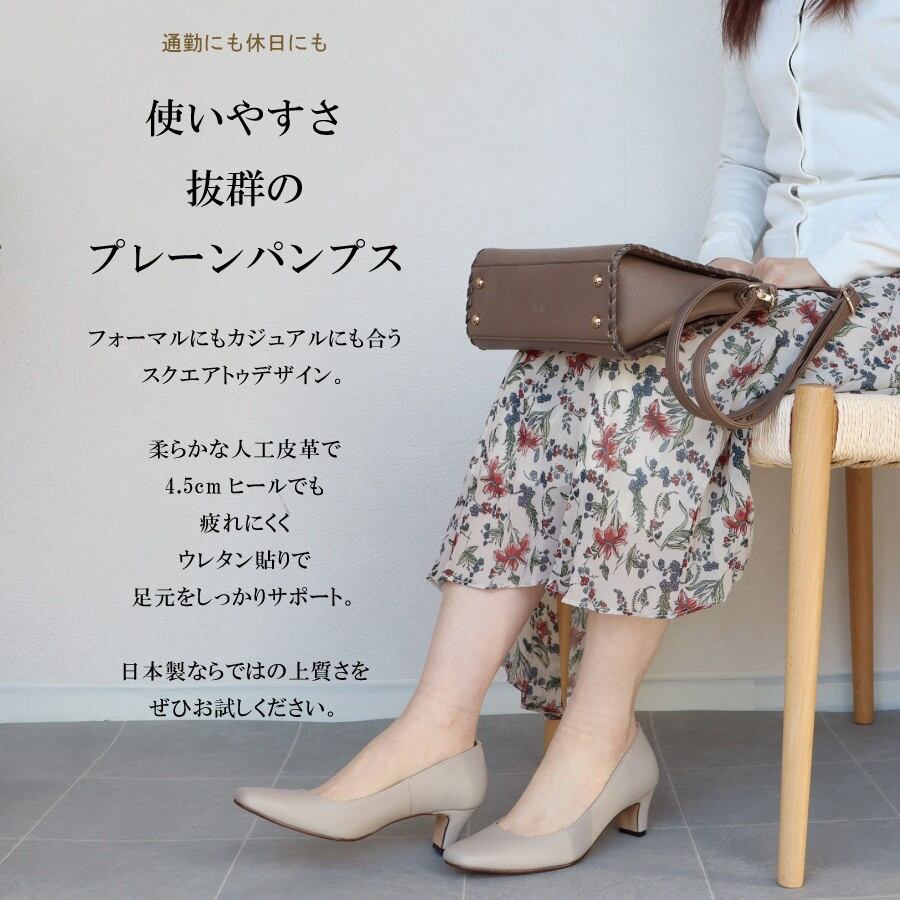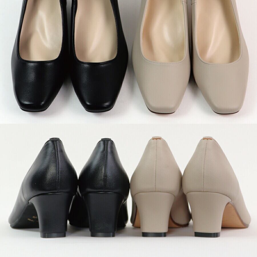 【日本製】 HS スクエアトゥ プレーン パンプス 5cm ヒール ベージュ ブラック 仕事 フォーマル フォーマル