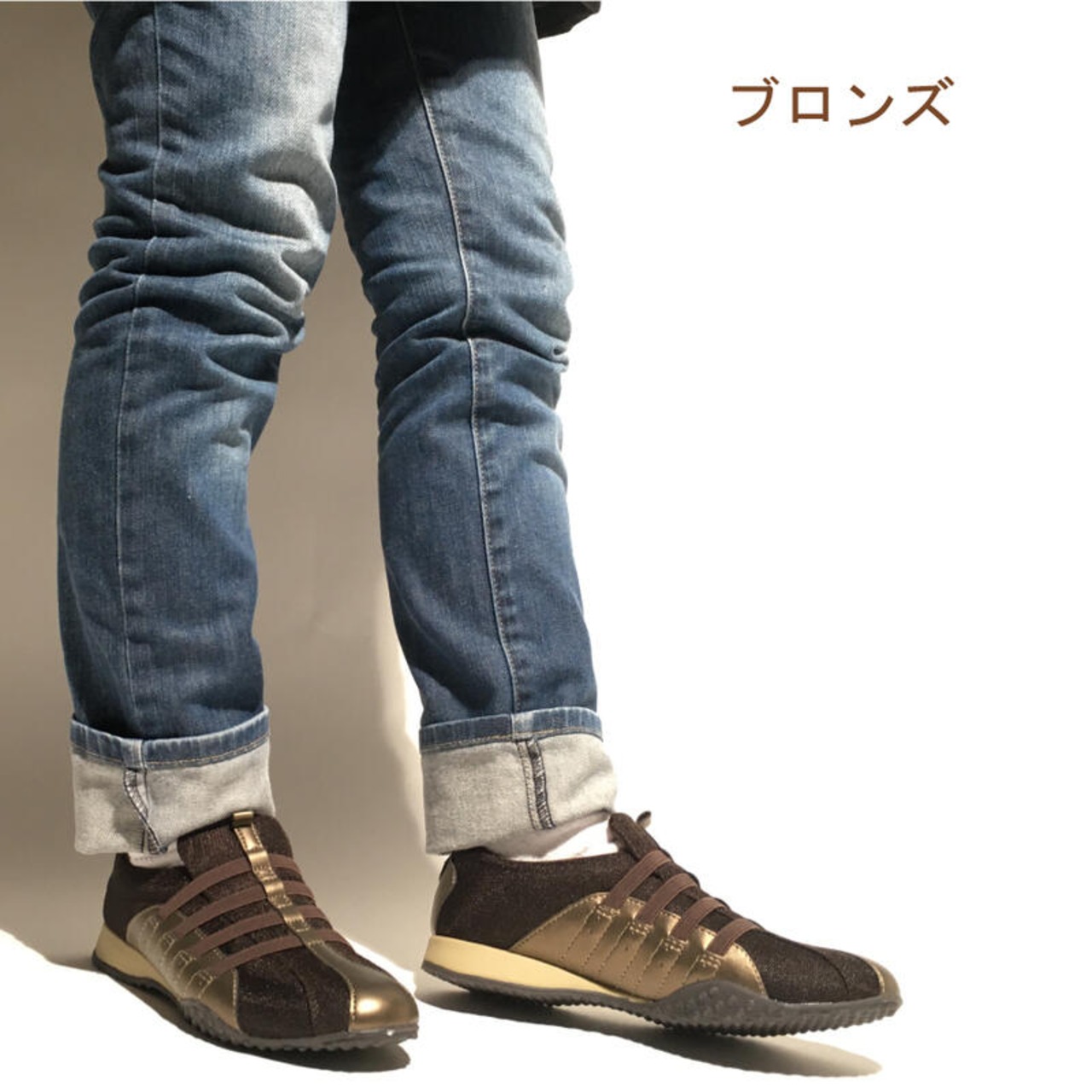 【スピーディーダック】 スニーカー レディース ブラック ベージュ スリッポン コンフォート ひもなし