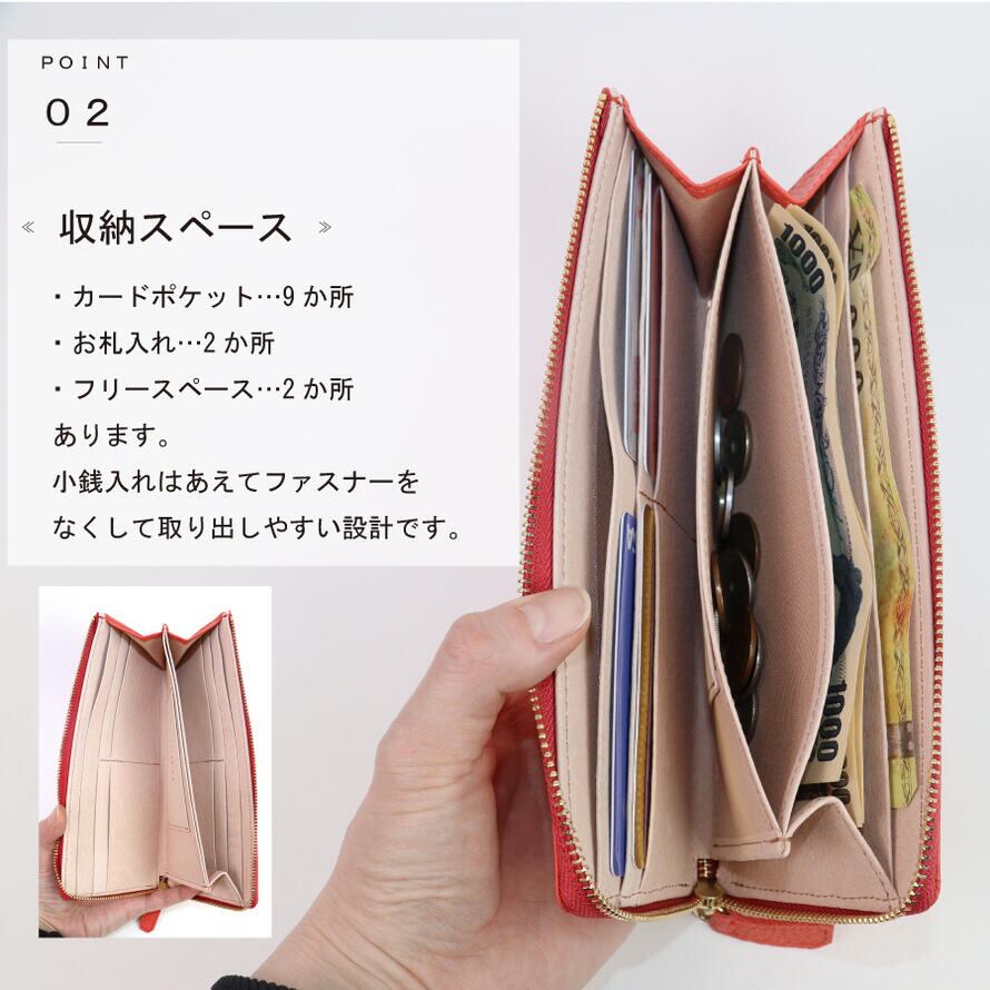 ・収納スペースも沢山あり、小銭入れはファスナーをなくて取り出しやすい設計です