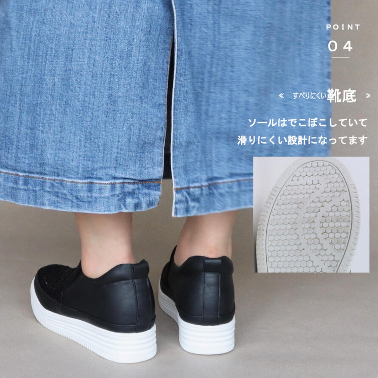 ・3.5cmの厚底ソールと3cmのインヒールで脚長効果抜群