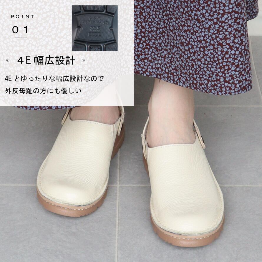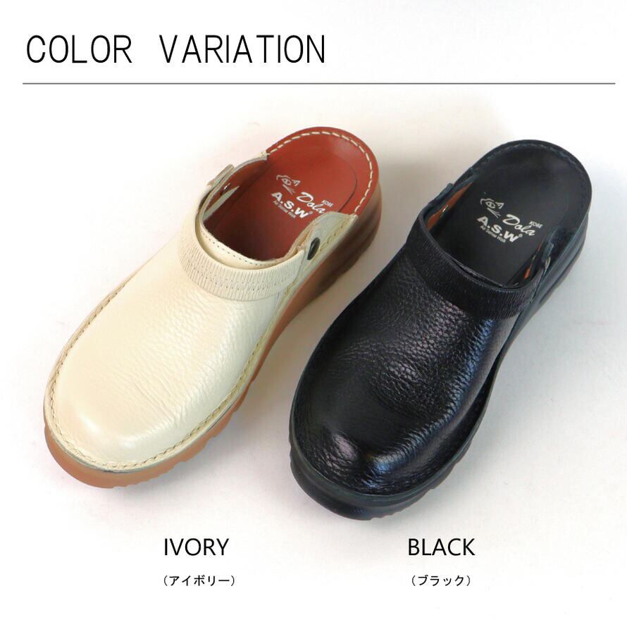 【日本製】 本革 サボサンダル 4E レザー レディース 軽量 甲高 幅広 外反母趾 ヒール 5cm 黒 白 asw dola 夏 カジュアル 厚底 靴