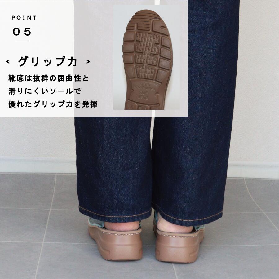 ・4Eとゆったり幅広設計なので、外反母趾の方にもやさしい。