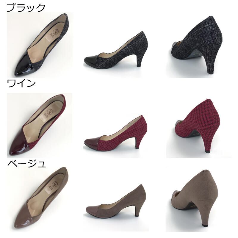 【日本製】 HS エナメル スエード パンプス 7cm ヒール7センチ ベージュ ブラック 半額