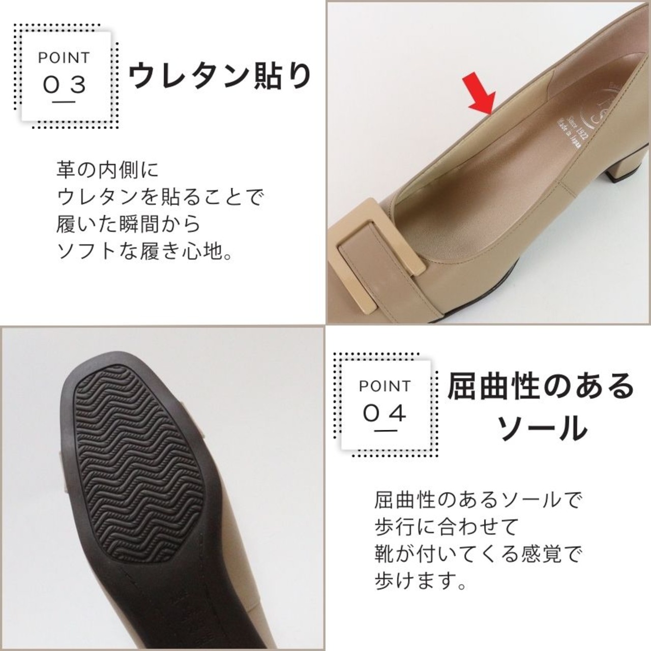 ・革の内側にはウレタン素材を使用しているので足当たりソフト