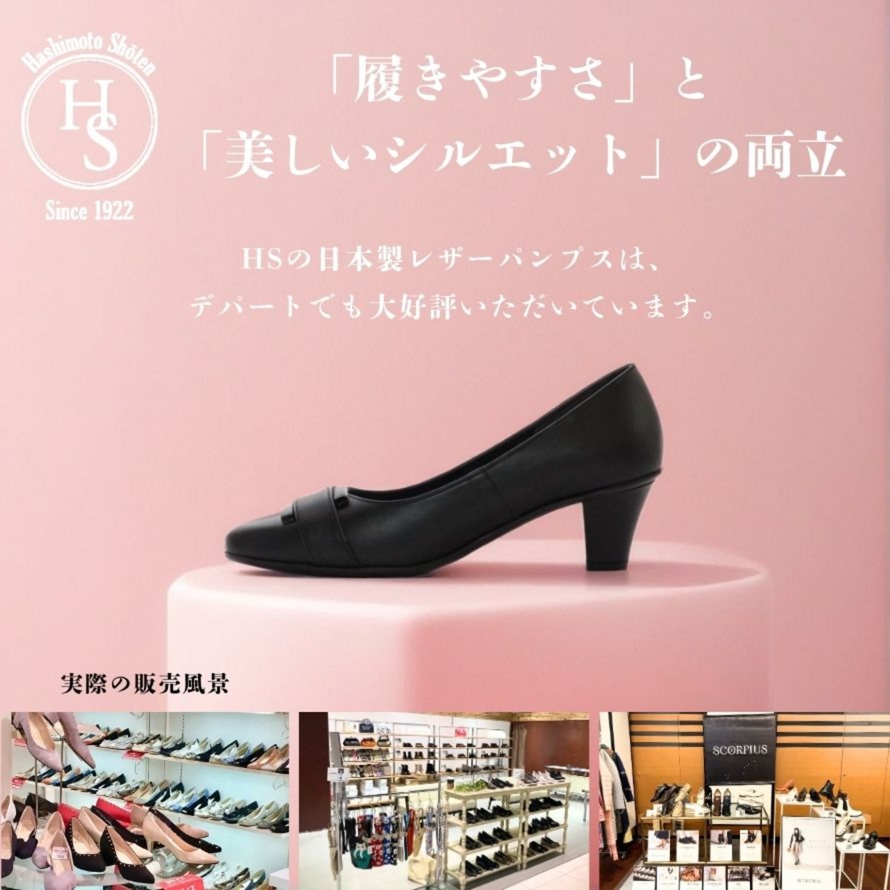 ・創業100周年を超えた「くつの橋本商店」は全国の百貨店でイベントやPOPUPでレディースシューズを販売している会社です。