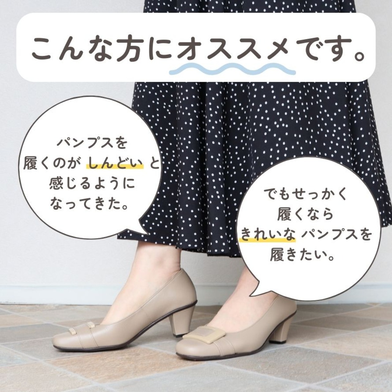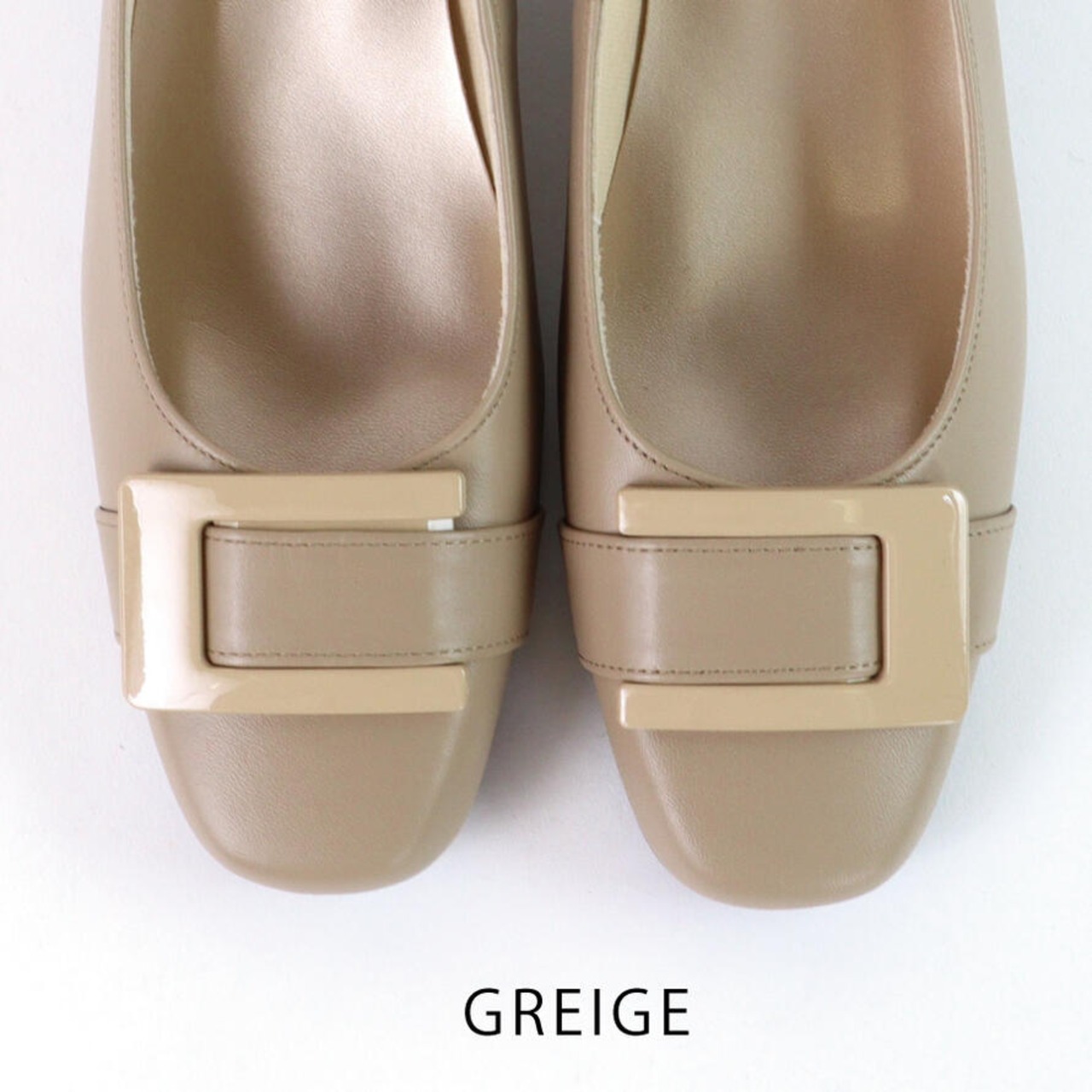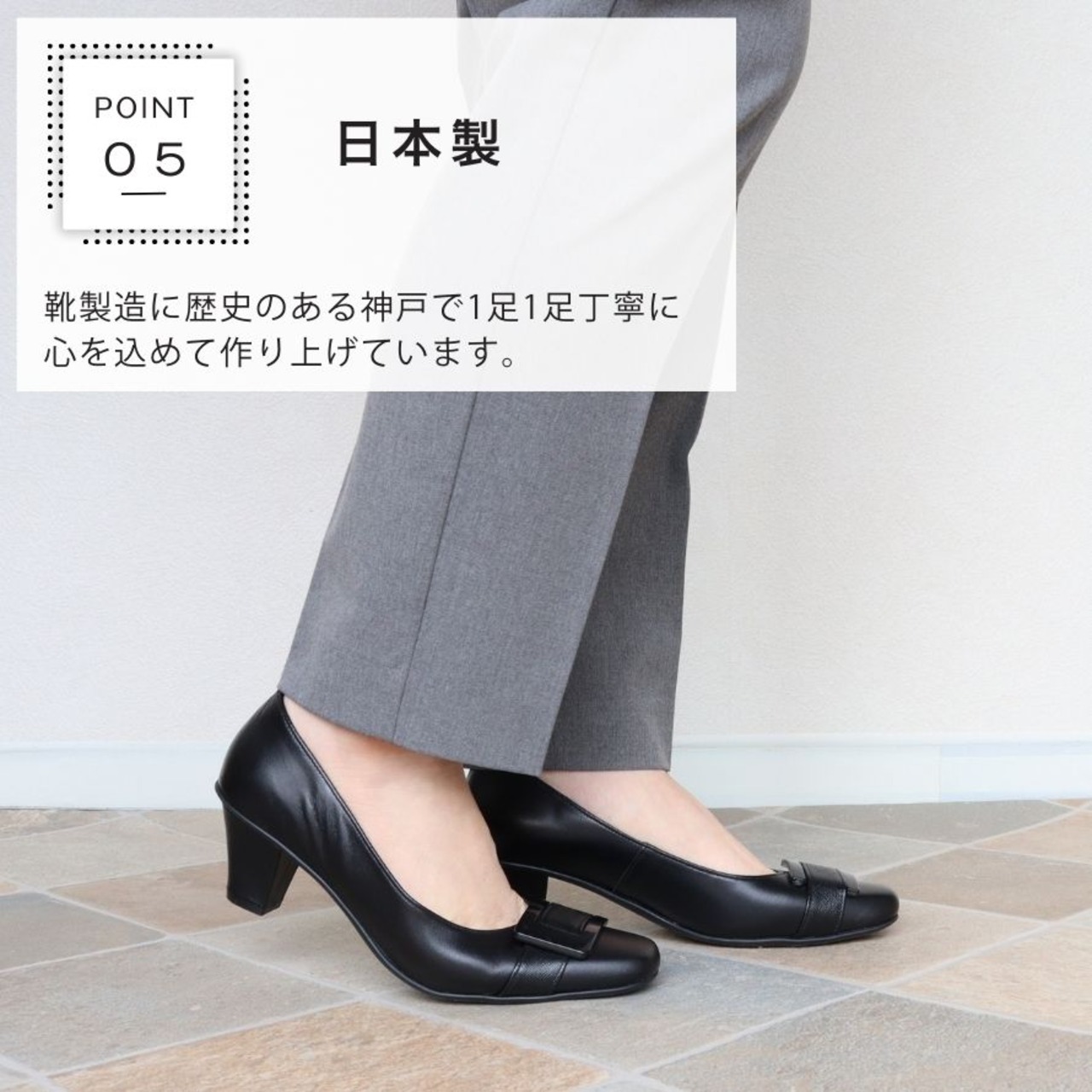 【日本製】 HS バックル レザー パンプス 3E 幅広 甲高 外反敬老趾 黒
