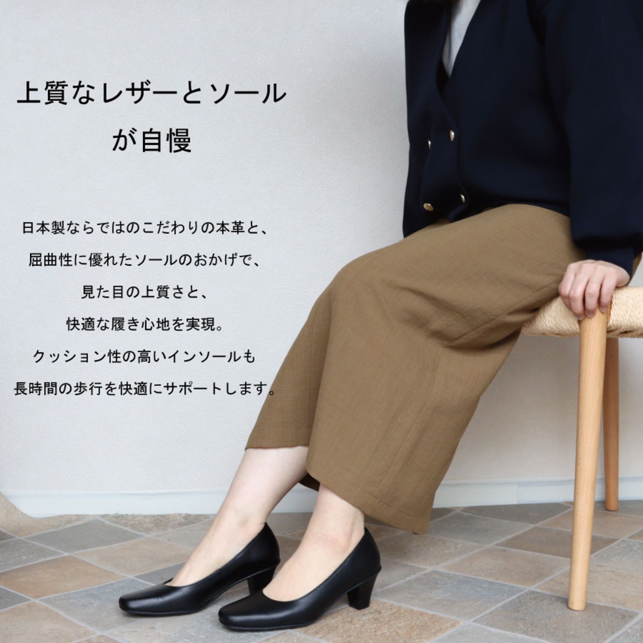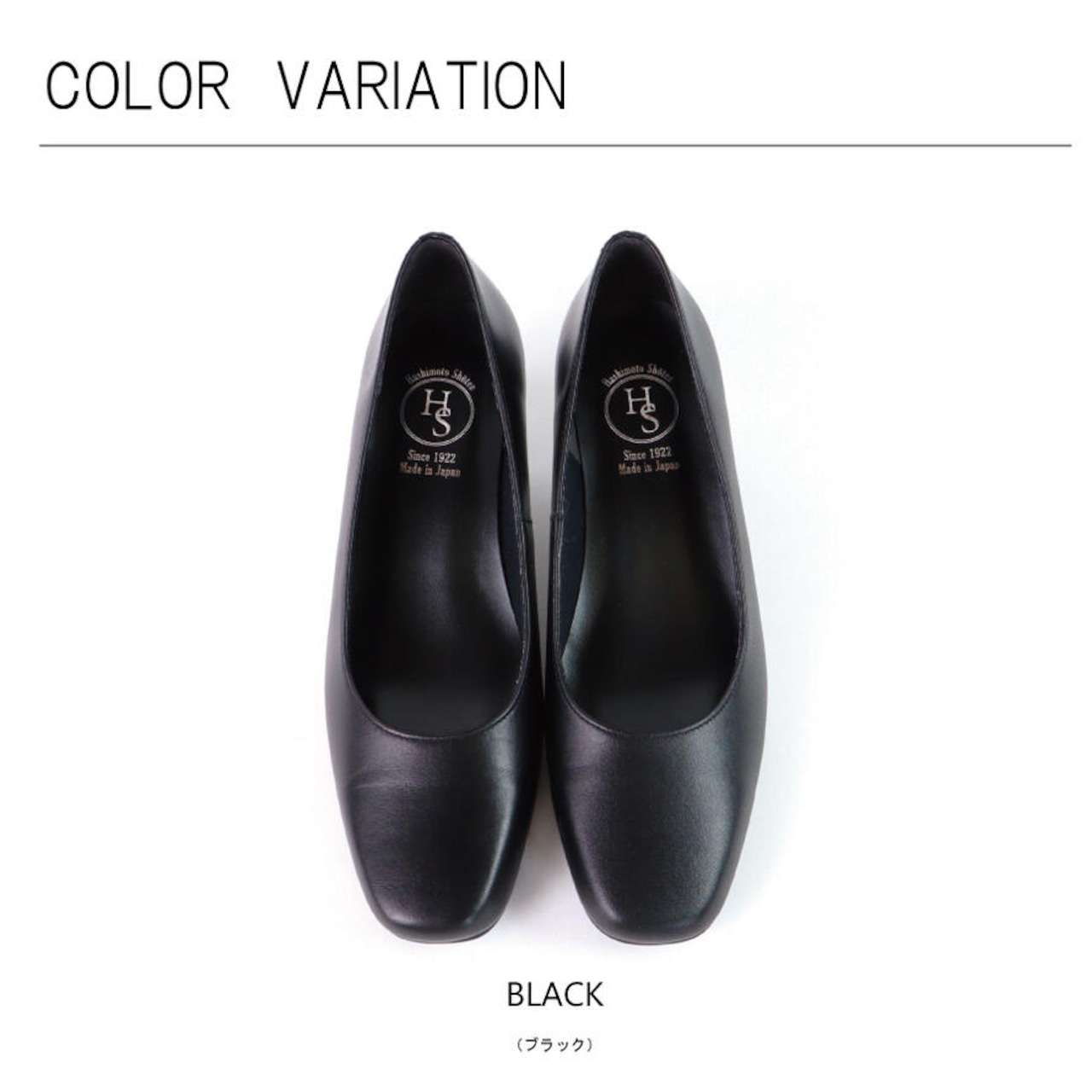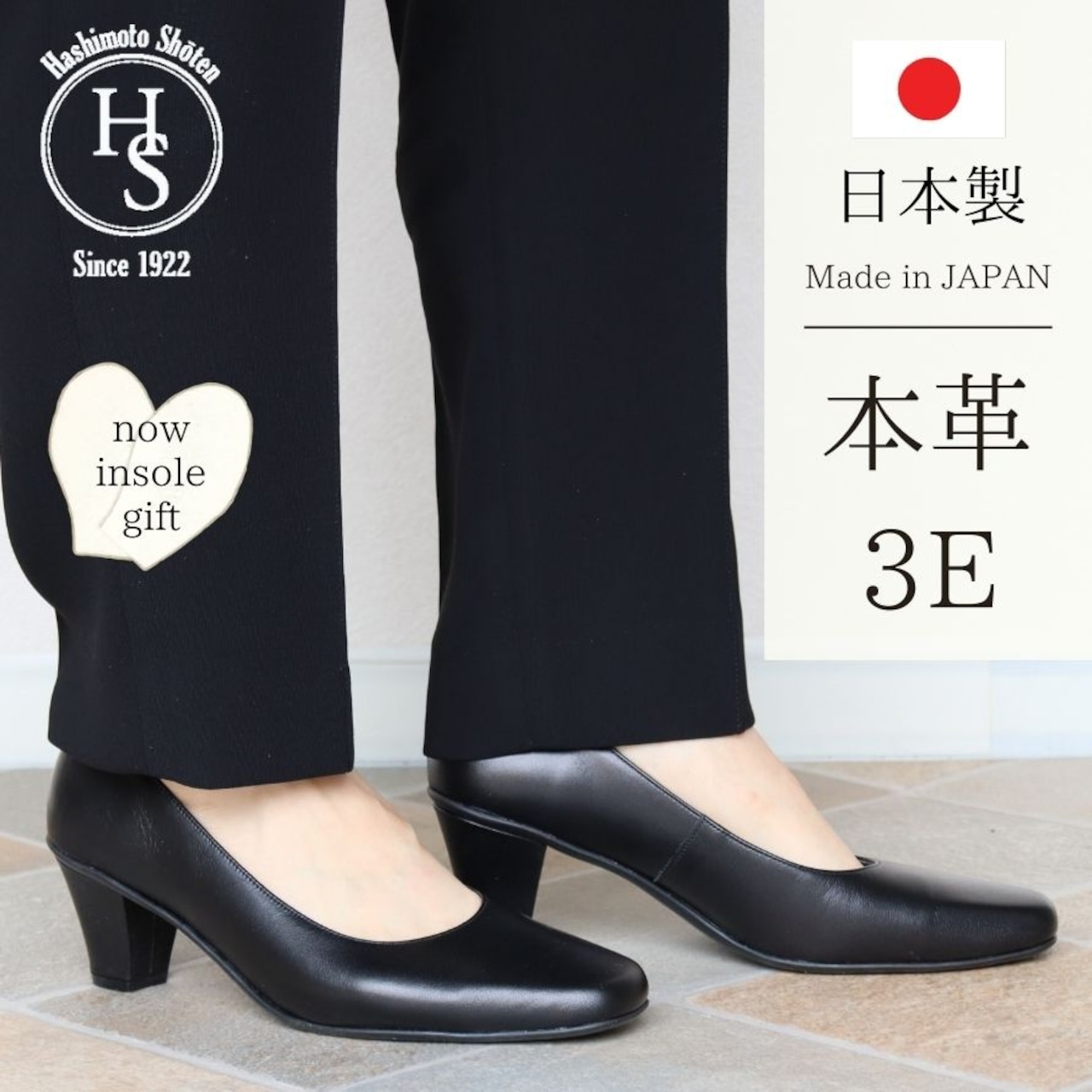 【日本製】HS フォーマル シンプル レザー パンプス 痛くない 黒 歩きやすい 本革 幅広 3E 外反母趾 ローヒール ヒール ブラック