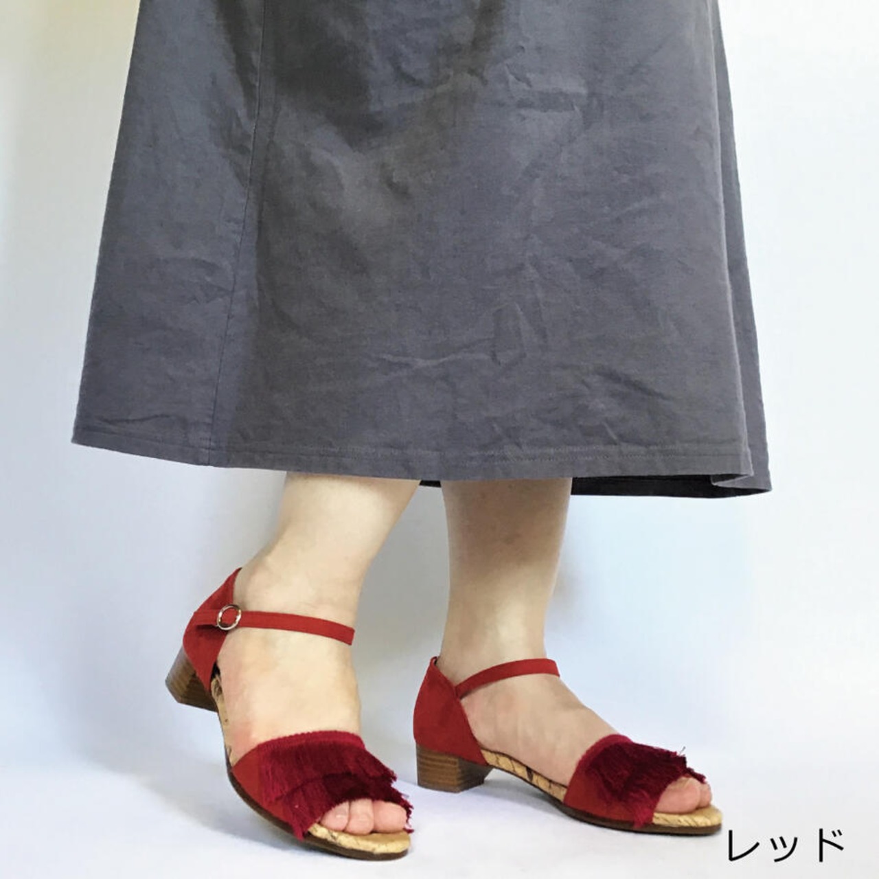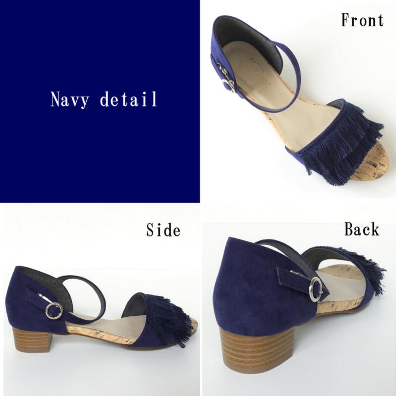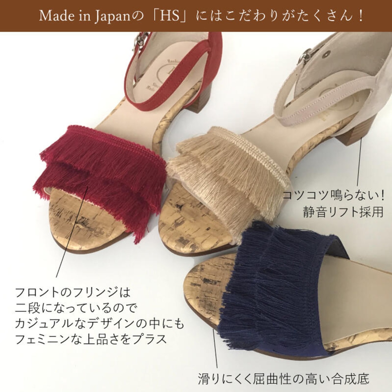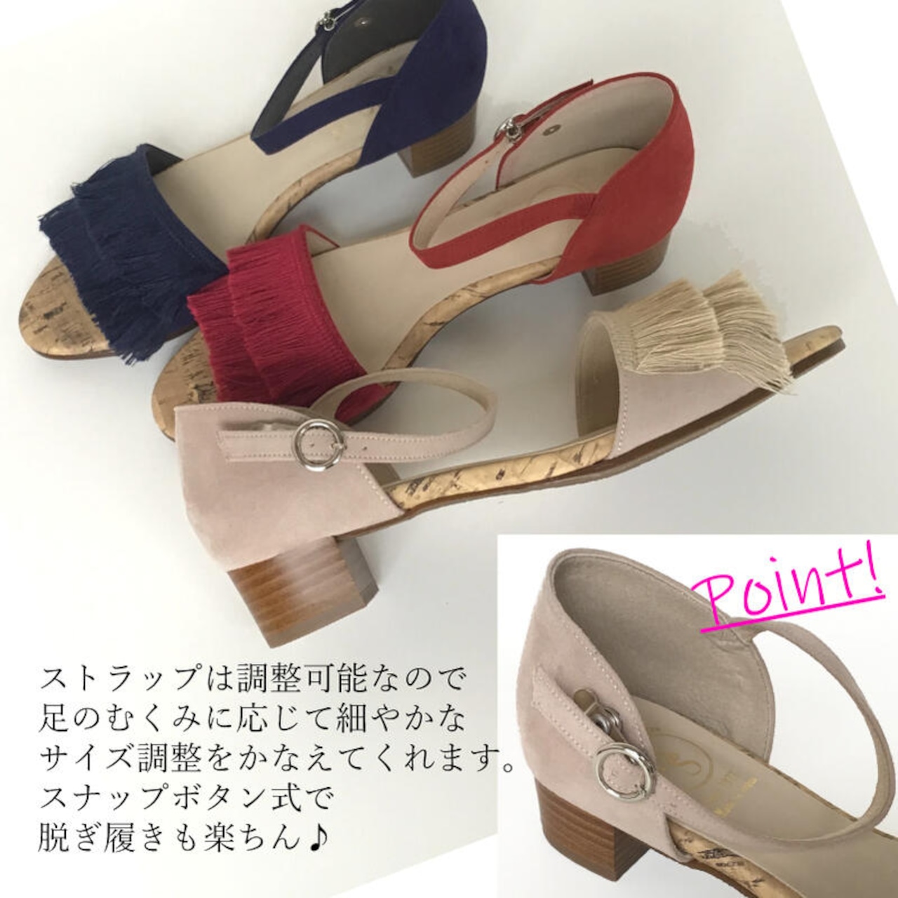 【日本製】 ストラップ 付 フリンジ サンダル レディース 3cm ヒール3センチ ベージュ ネイビー スエード 半額