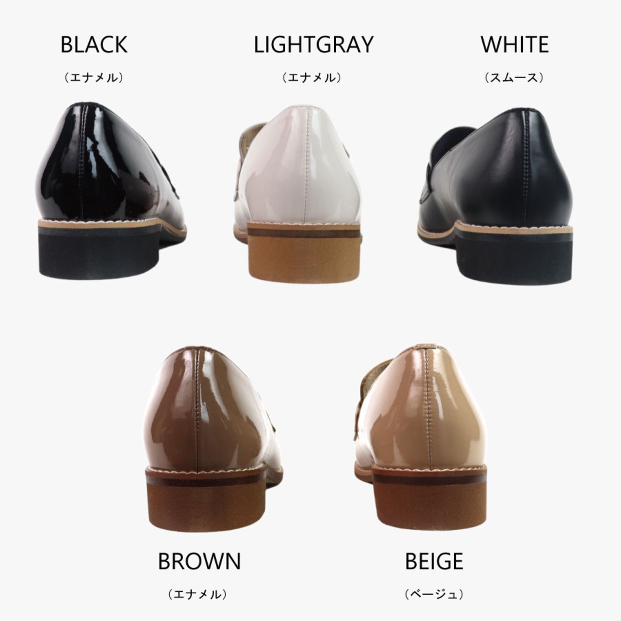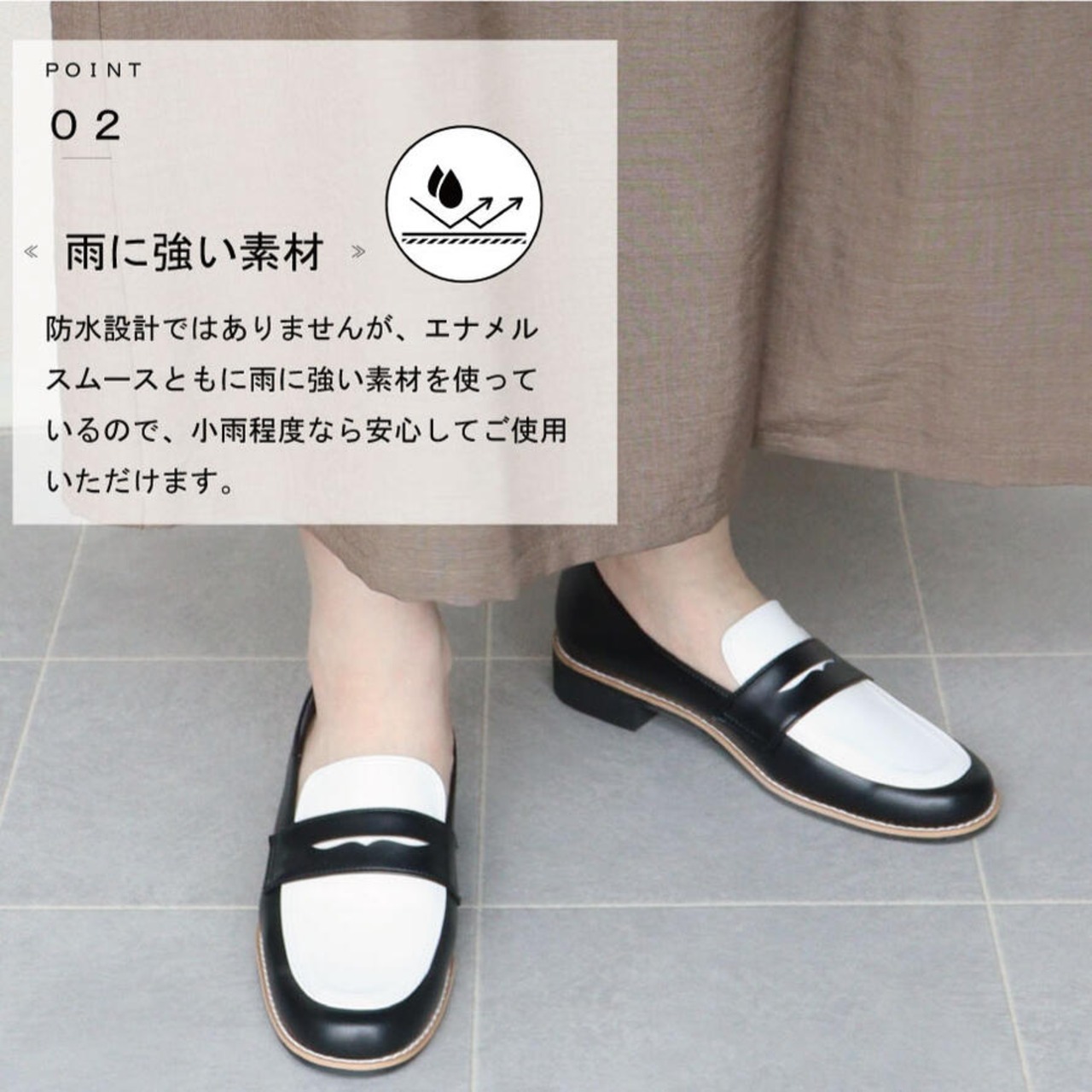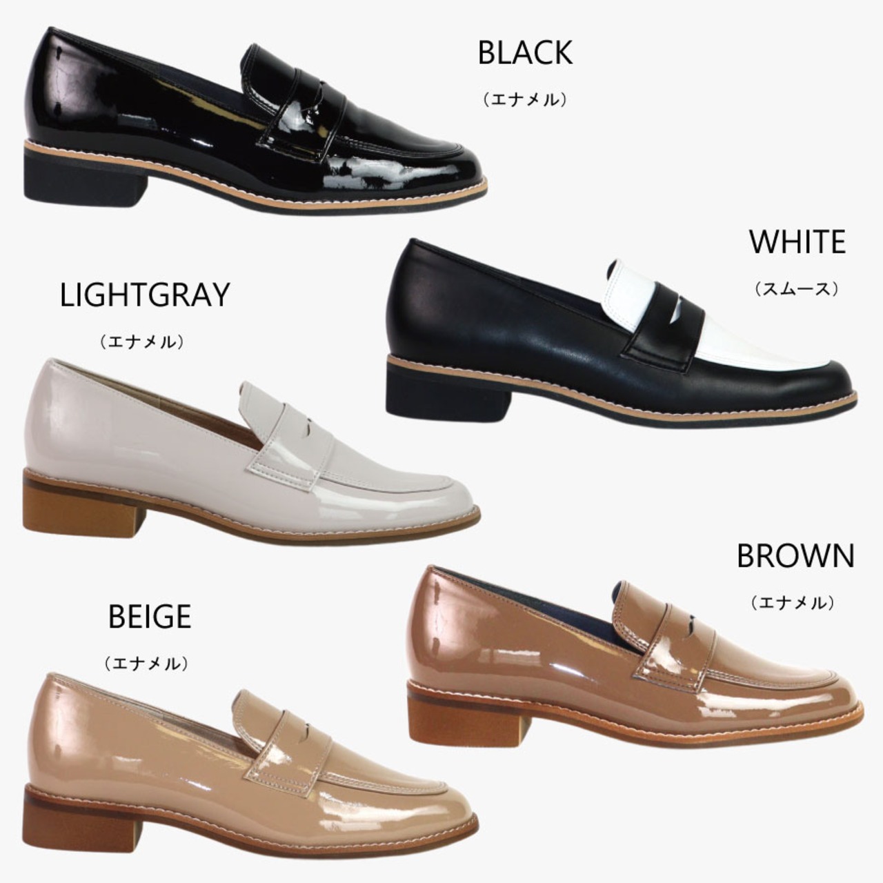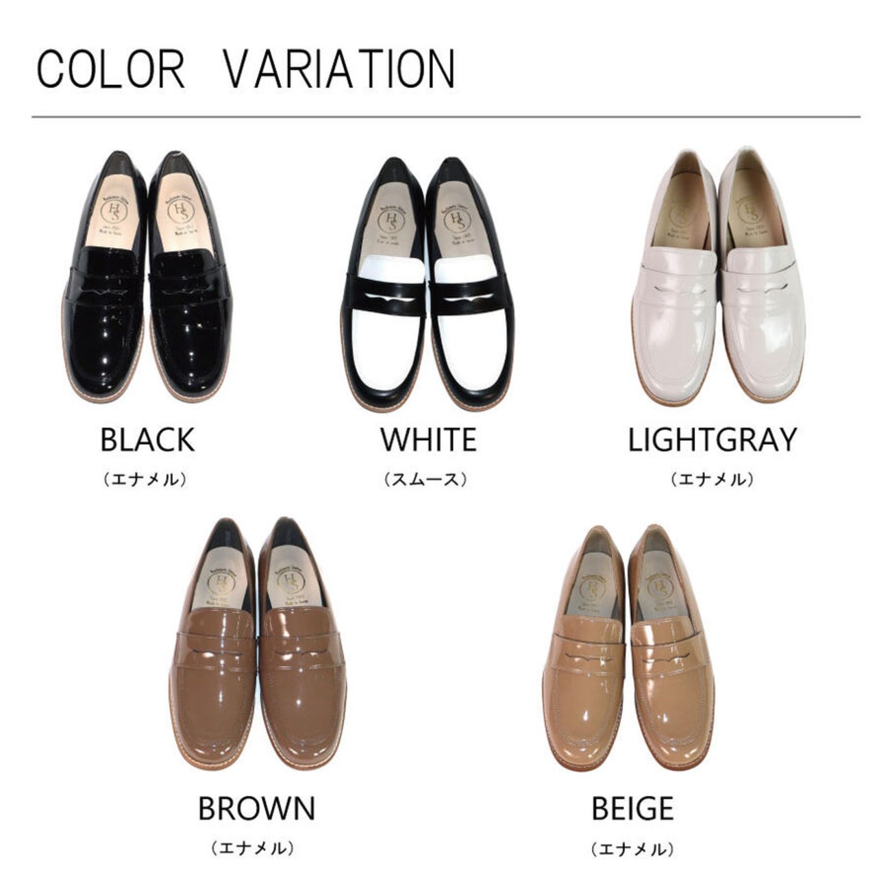 【日本製】 HS エナメル コイン ローファー レディース 痛くない 歩きやすい エナメル ヒール3センチ 2E 相当 幅広 大人 おしゃれ 雨の日 おじ靴 黒 白 靴 雨 レイン 半額