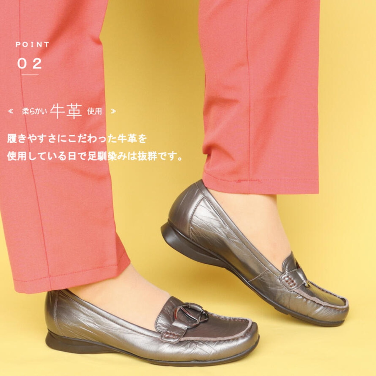 【FIZZ REEN】 フラット レザー ローファー レディース 40代 痛くない 本革 おしゃれ 靴 黒 ヒール 2センチ 50代 甲高 幅広 外反母趾 仕事