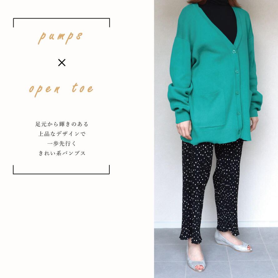 【日本製】 HS ウェッジソール オープントゥ パンプス 痛くない 幅広 柔らかい ローヒール 3cm ヒール 3E 相当 シルバー