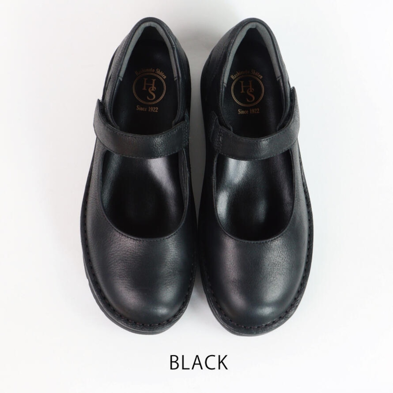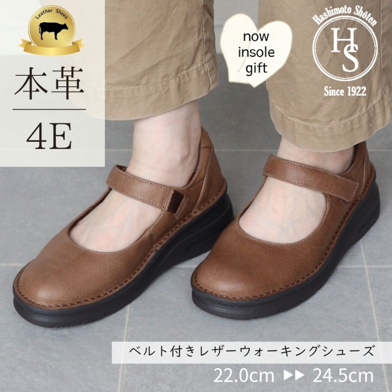 【HS】ベルト付き レザー ウォーキングシューズ 本革 やわらかい 高反発 厚底 幅広 4E ブラック 外反母趾 滑りにくい