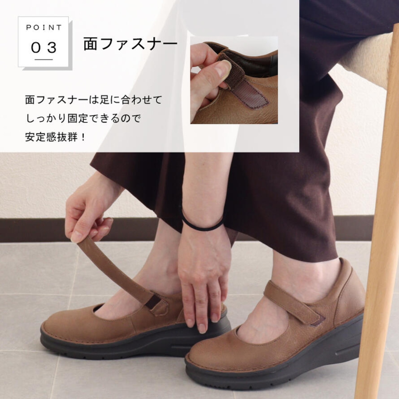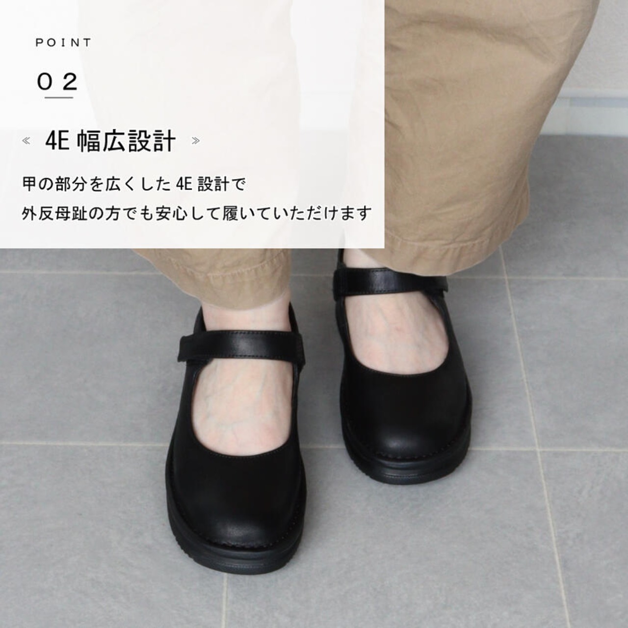 ・甲の部分を広くした4E幅広設計なので外反母趾の方でも安心して履いていただけます
