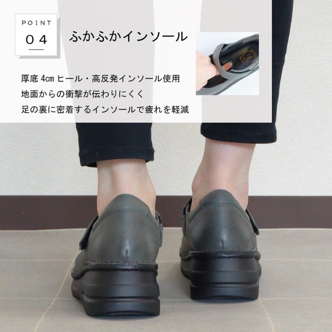 ・高反発インソール+4cmの厚底ソールで地面からの衝撃も吸収し疲れにくい