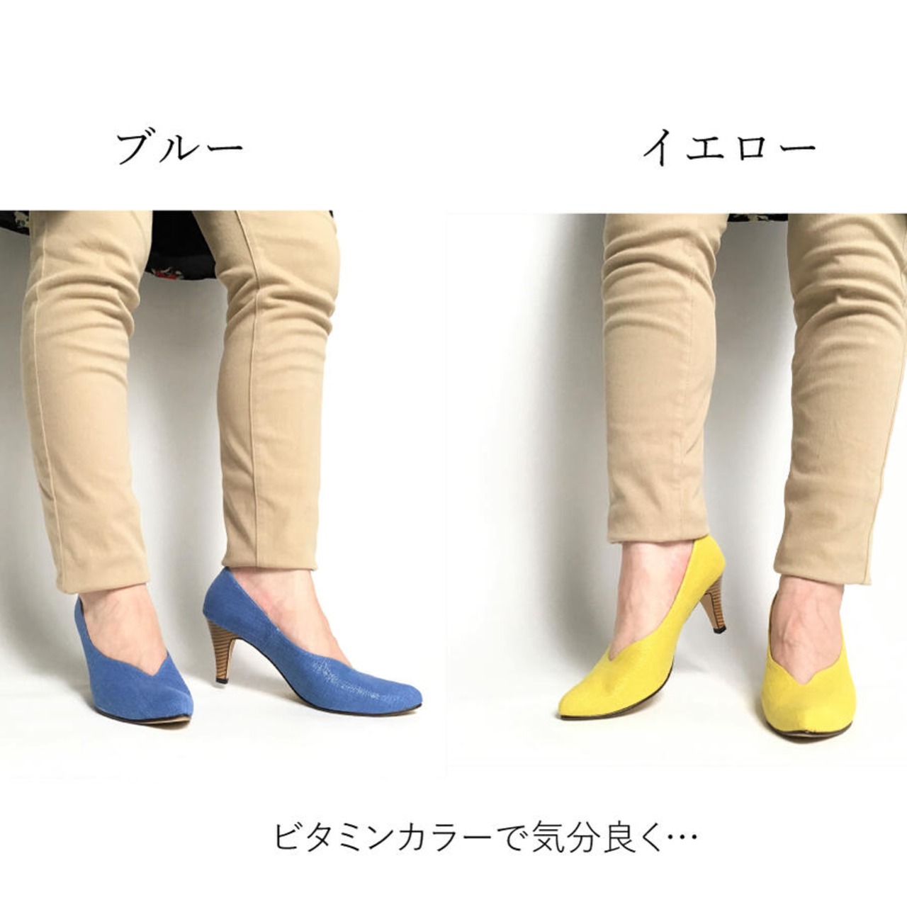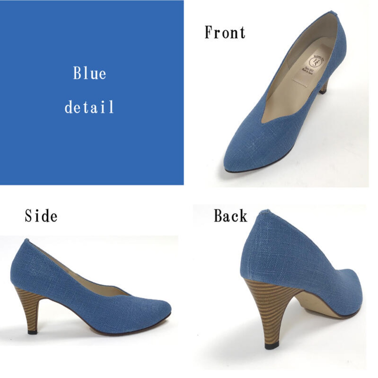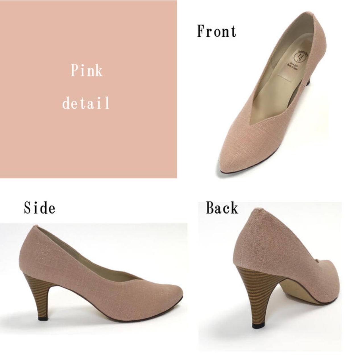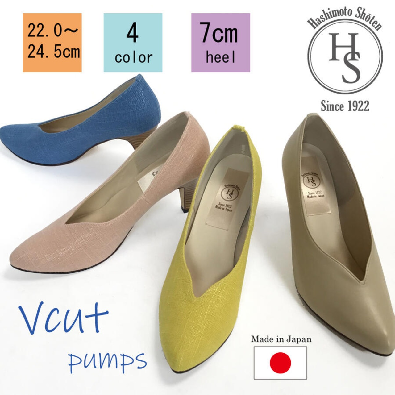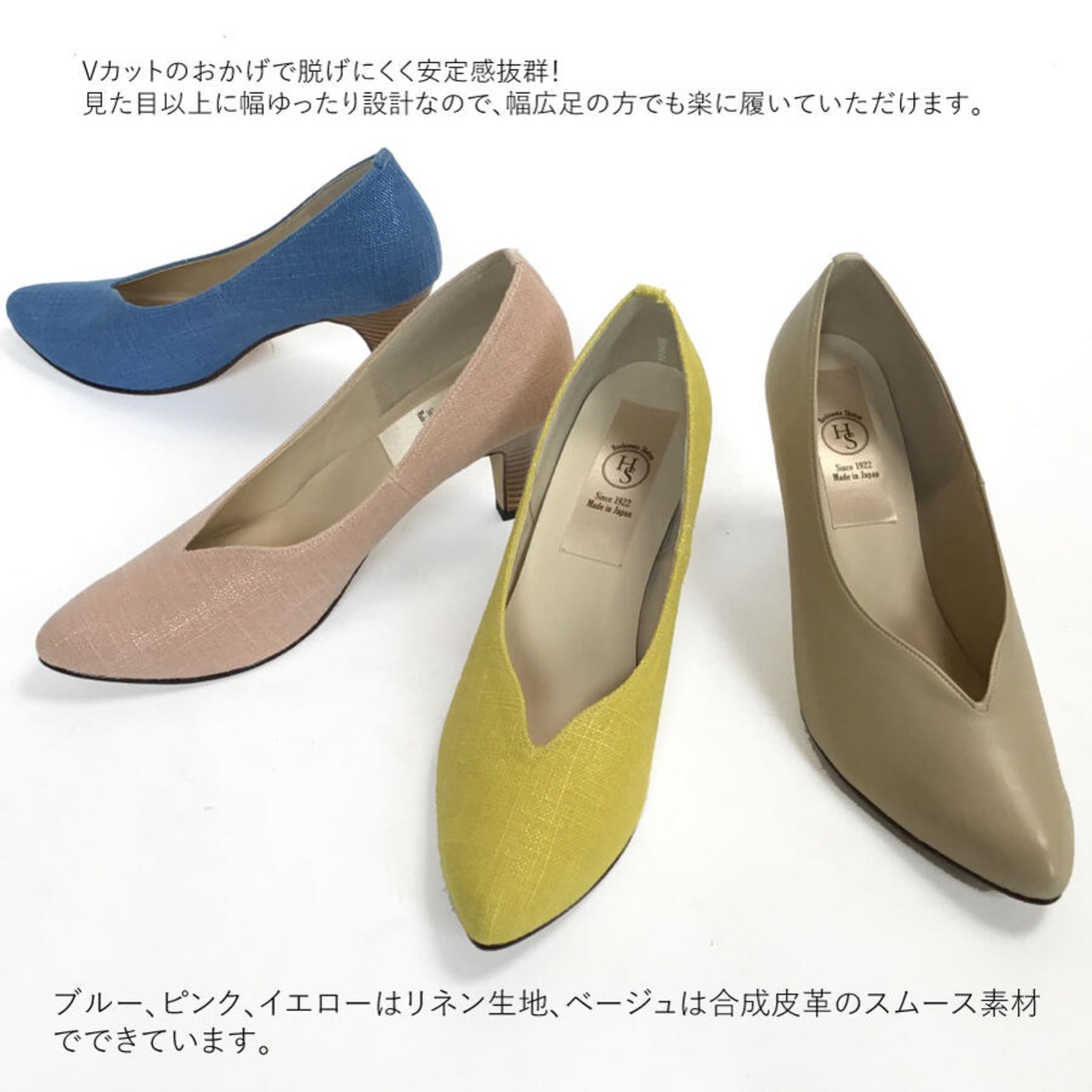 【日本製】 HS Vカット サマー パンプス 4000 7cm ヒール7センチ スムース リネン地 ベージュ