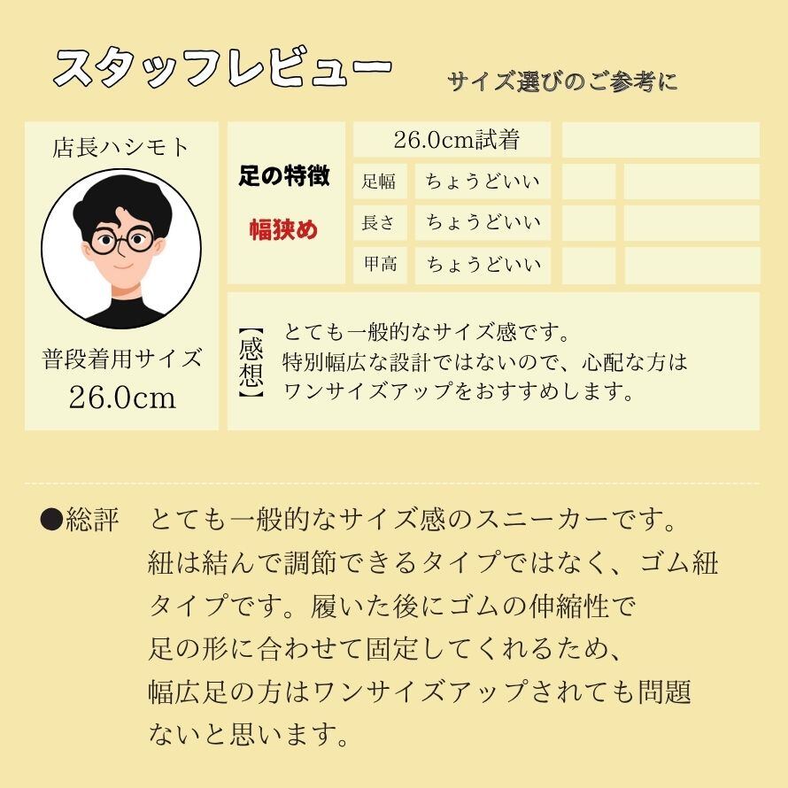 ・ゴム紐タイプなので紐を結ぶ必要はありません。またゴムのおかげで足の形に合わせてぴったりフィット