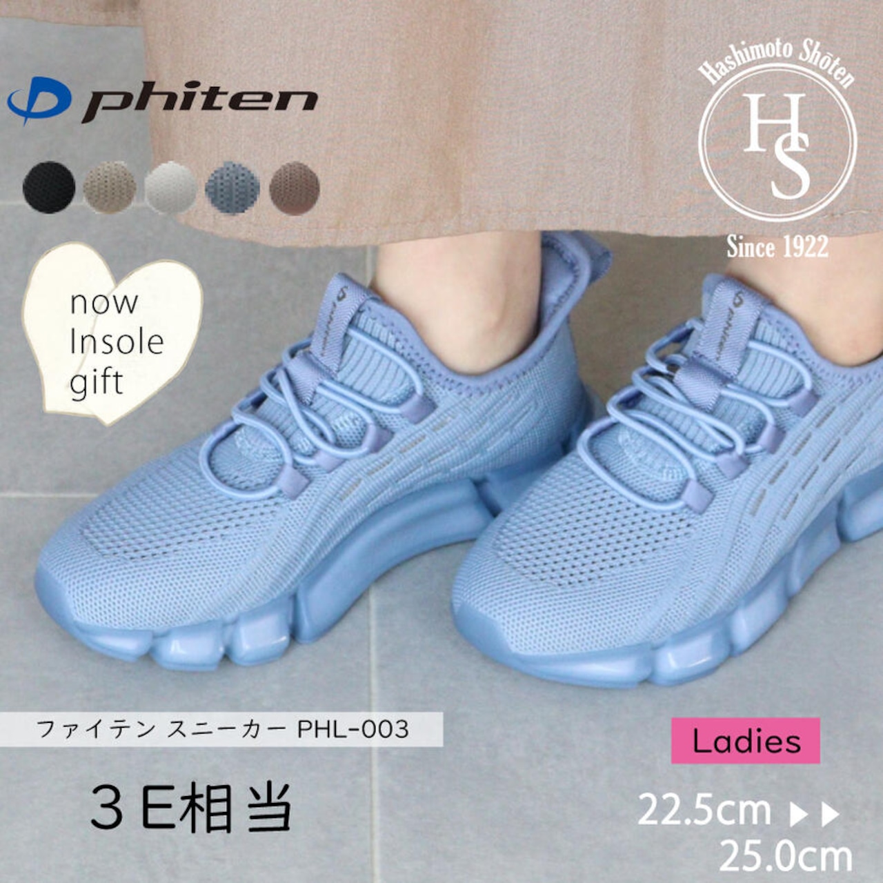 ファイテン phiten スニーカー レディース 厚底 ストレッチ 軽量 歩きやすい 低反発中敷き 運動 婦人 ウォーキング カジュアル MTEAX ヒール 3cm ニット ダットスニーカー