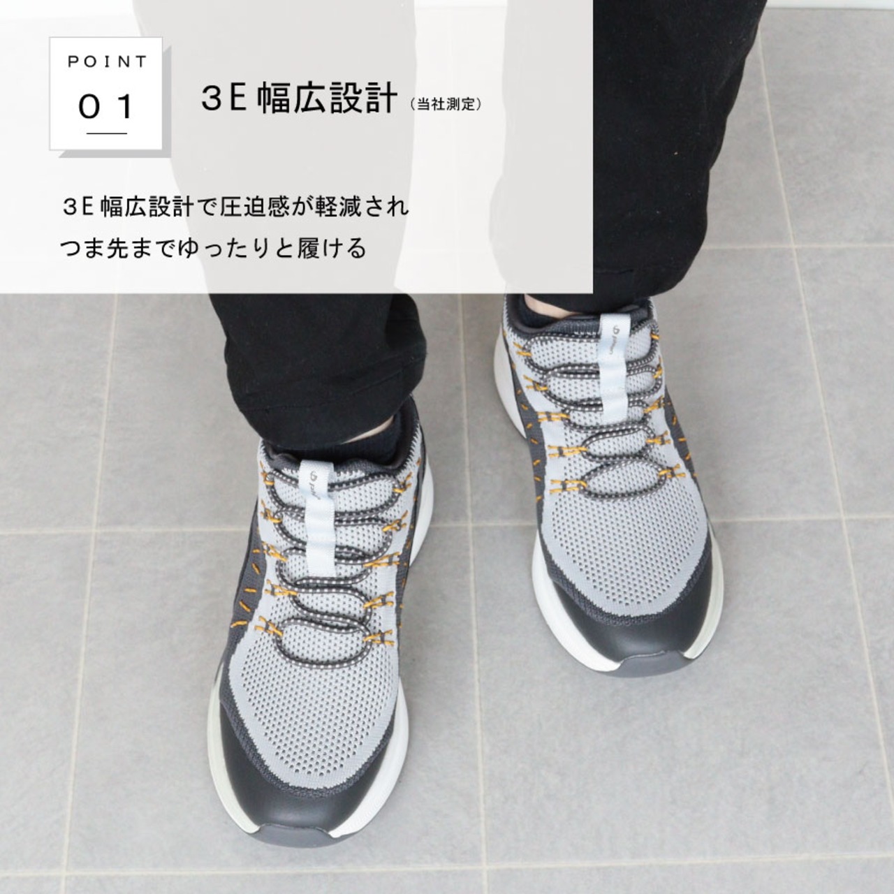 ・3E設計で圧迫感が軽減されつま先までゆったりと履いていただけます