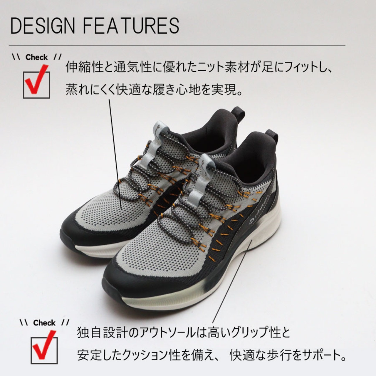 ・グリップ性の高いソールなので滑りにくい