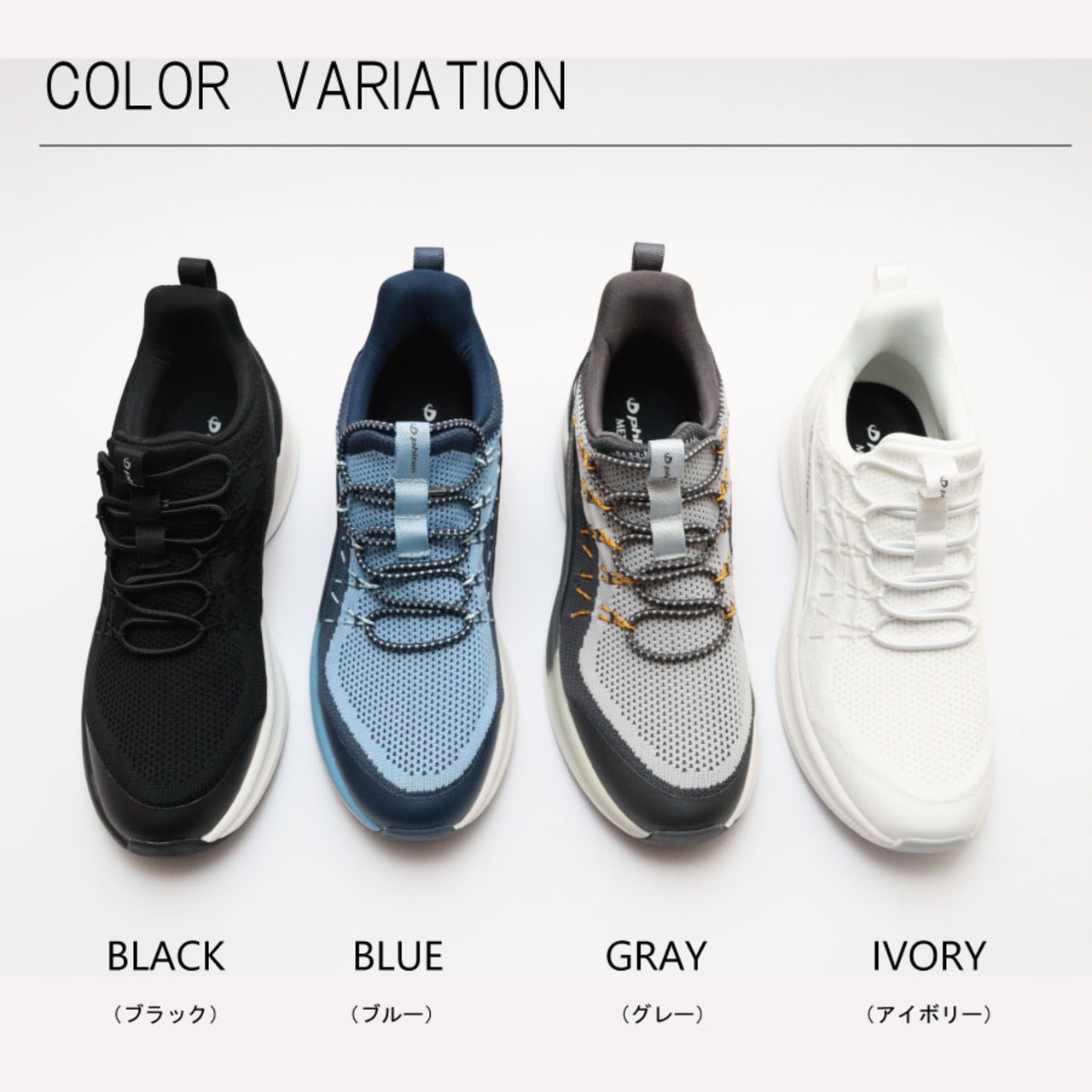 ファイテン phiten スニーカー メンズ 厚底 ストレッチ 軽量 歩きやすい 低反発中敷き 運動 紳士 ウォーキング カジュアル MTEAX ヒール 4cm ニット