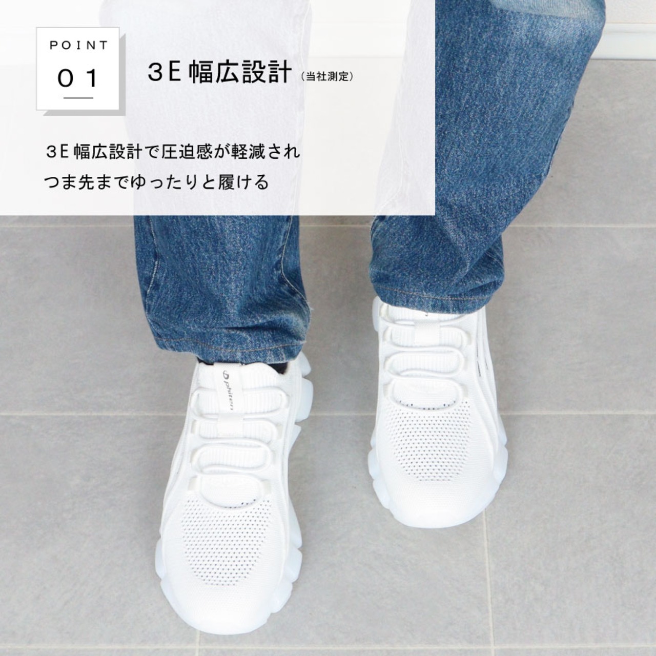 ・3E設計で圧迫感が軽減されつま先までゆったりと履いていただけます