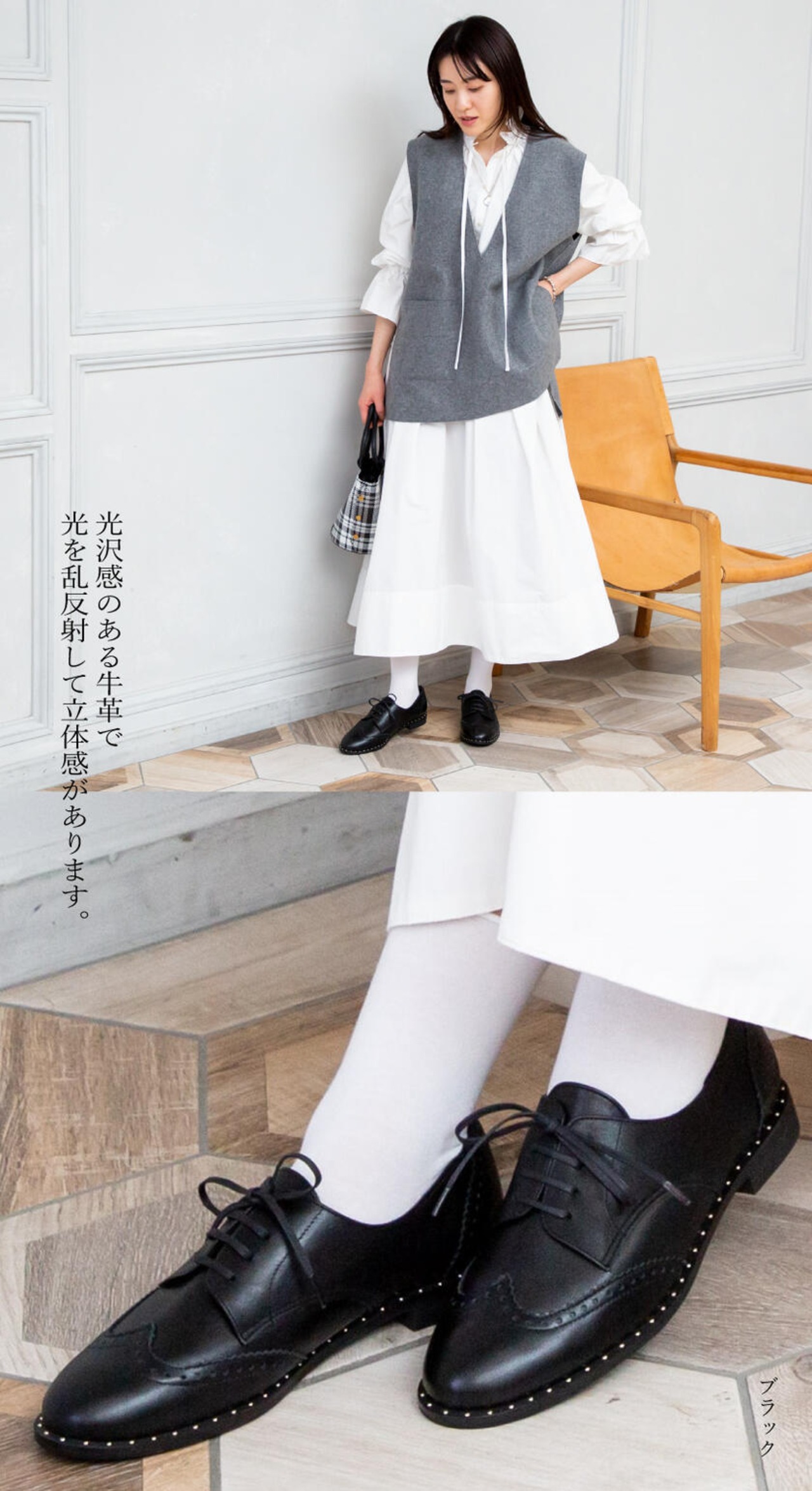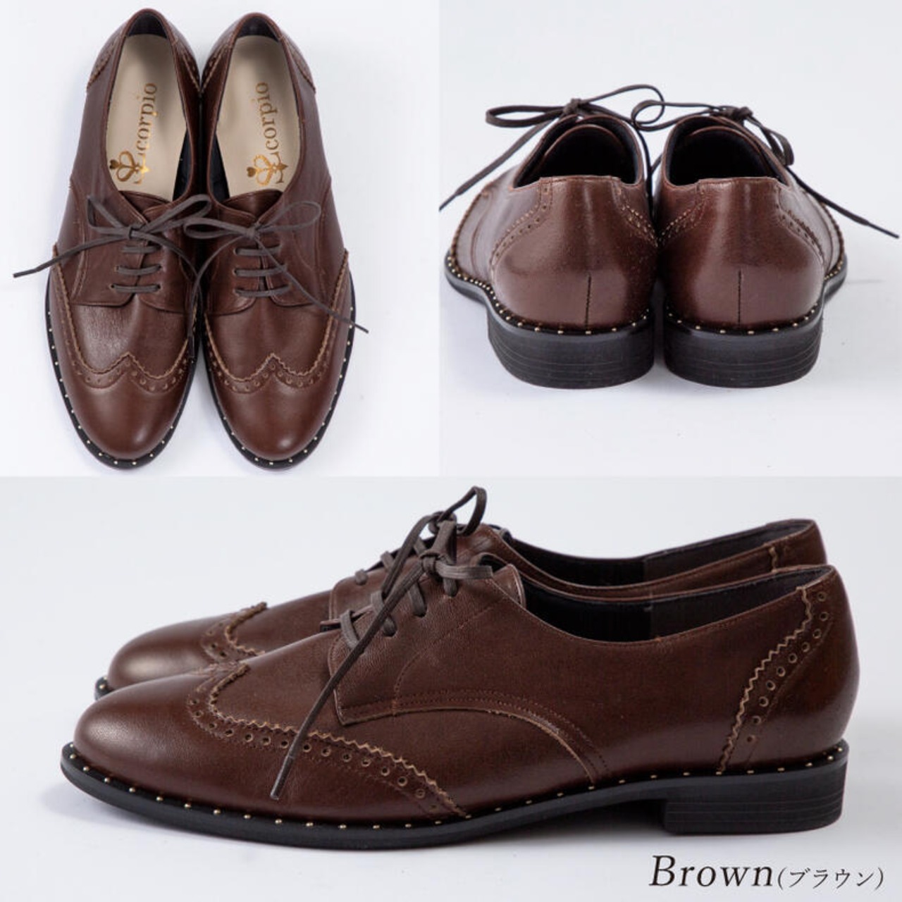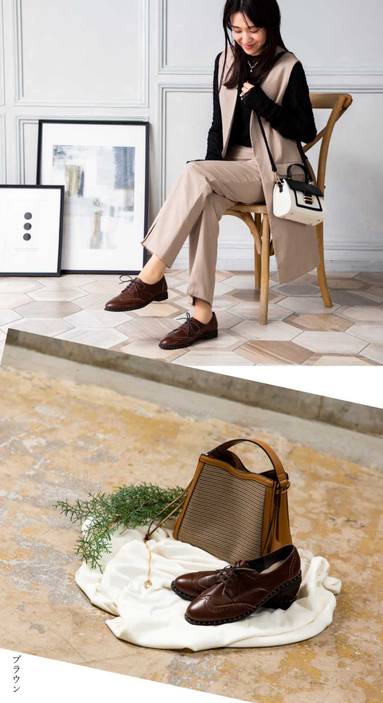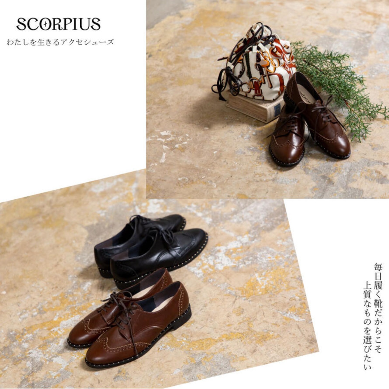 【SCORPIUS】 スコーピウス スタッズ レース アップ シューズ レディース ブラック ブラウン 本革 おじ靴 日本製 紐靴 メンズライク