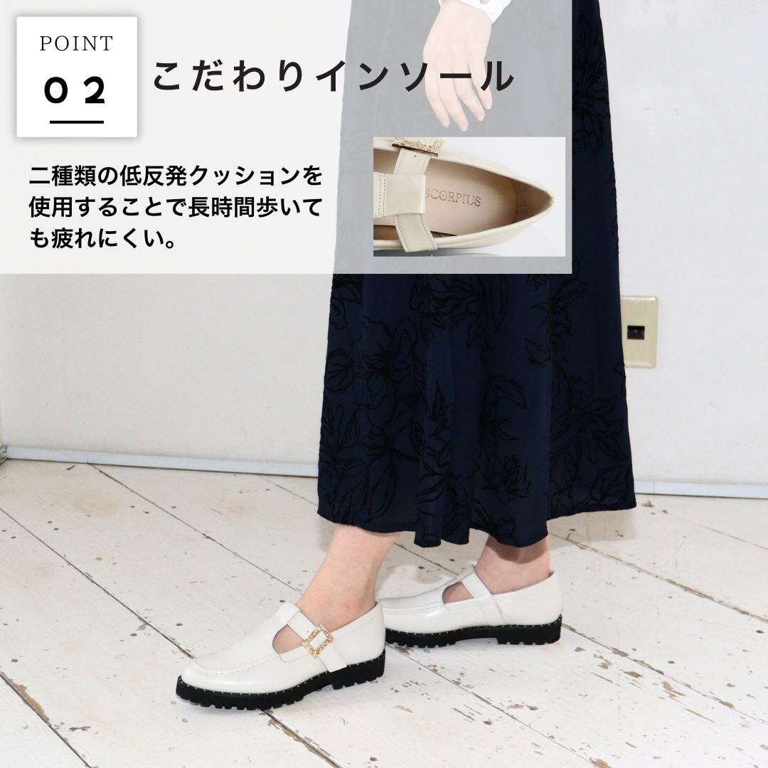 【SCORPIUS】本革 T字 ストラップ ローファー レディース 日本製 スタッズ ビジュー ベルト付き スリッポン シューズ マニッシュシューズ きれいめ おしゃれ 黒 白 歩きやすい 疲れにくい 靴 レザー モード系