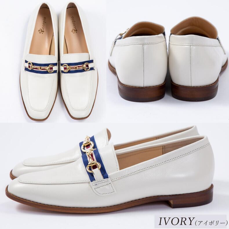 ブラック再入荷【SCORPIUS】 スコーピウス リボン ビット ローファー レディース 2cm ヒール 大きい 大人 厚底 白 黒 夏 3E 本革