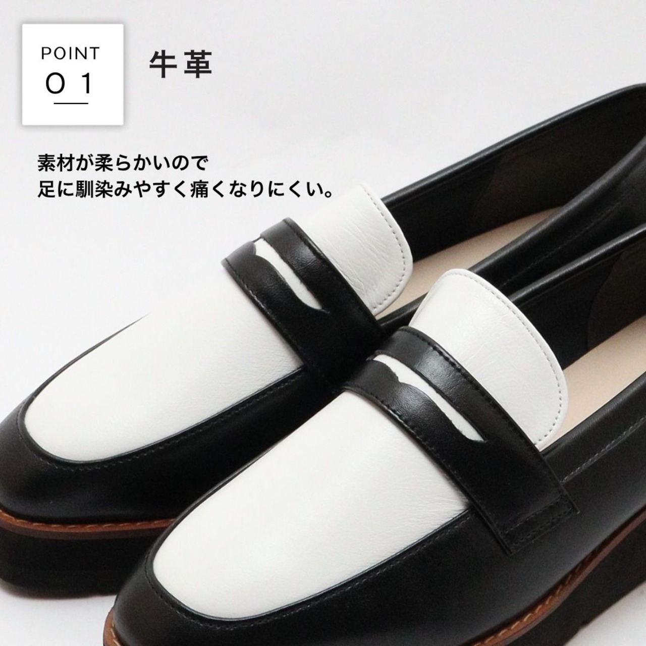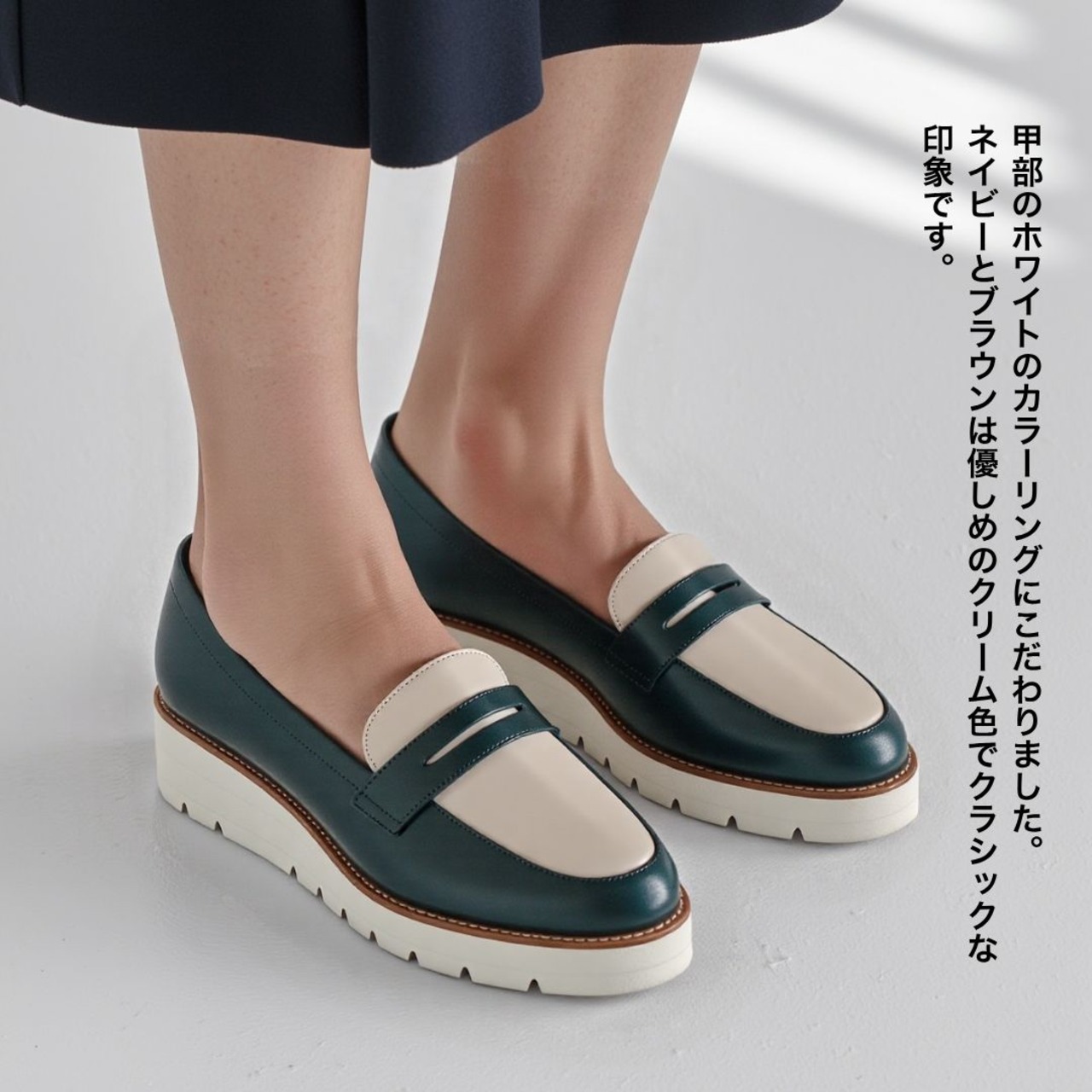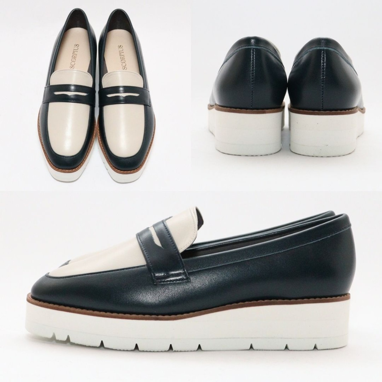 【SCORPIUS】バイカラー レザー ローファー レディース 本革 牛革 軽量 クッション 幅広 2E 通勤 旅行 おしゃれ 疲れにくい きれいめ 30代 40代 厚底ローファー 日本製 厚底 4cm 大人可愛い LWGレザー