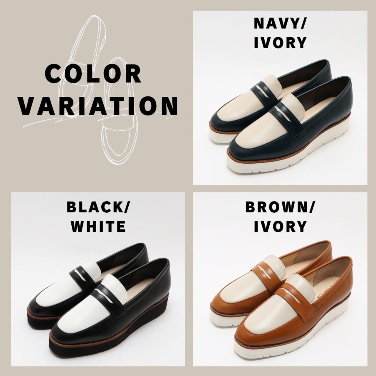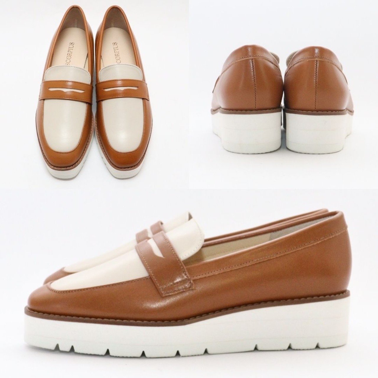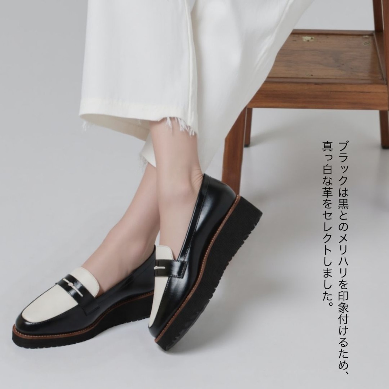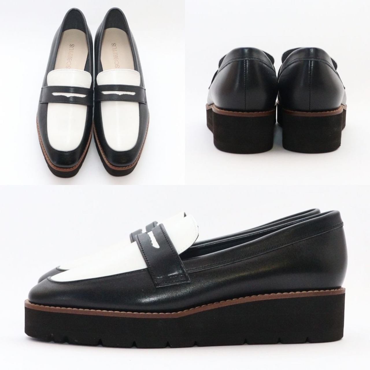 【SCORPIUS】バイカラー レザー ローファー レディース 本革 牛革 軽量 クッション 幅広 2E 通勤 旅行 おしゃれ 疲れにくい きれいめ 30代 40代 厚底ローファー 日本製 厚底 4cm 大人可愛い LWGレザー