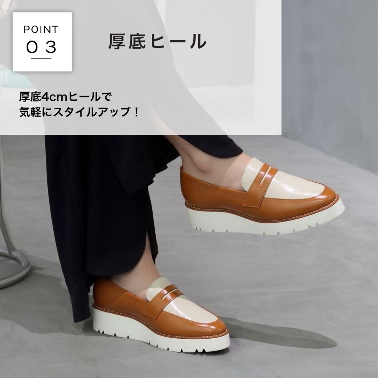 ・厚底4cmヒールで気軽にスタイルアップ
