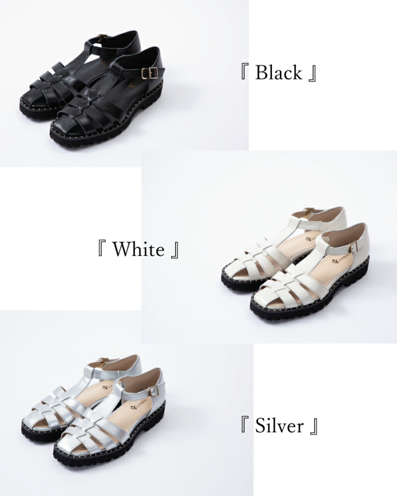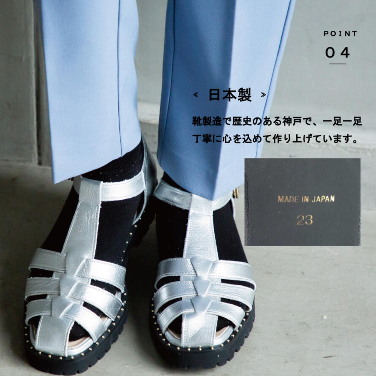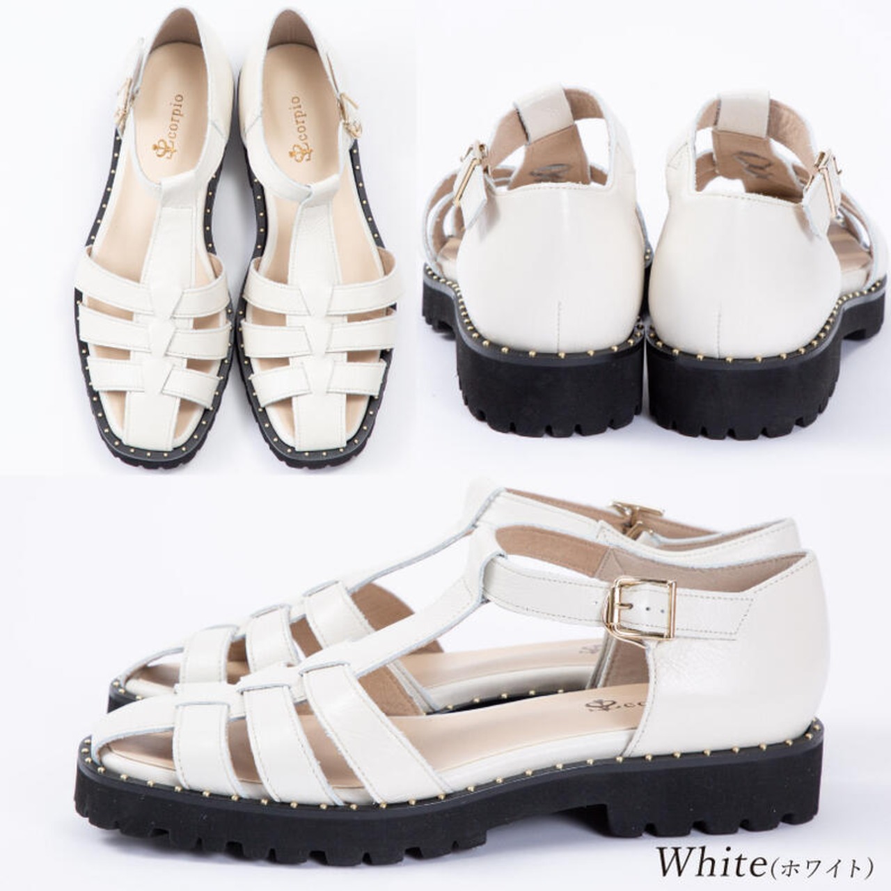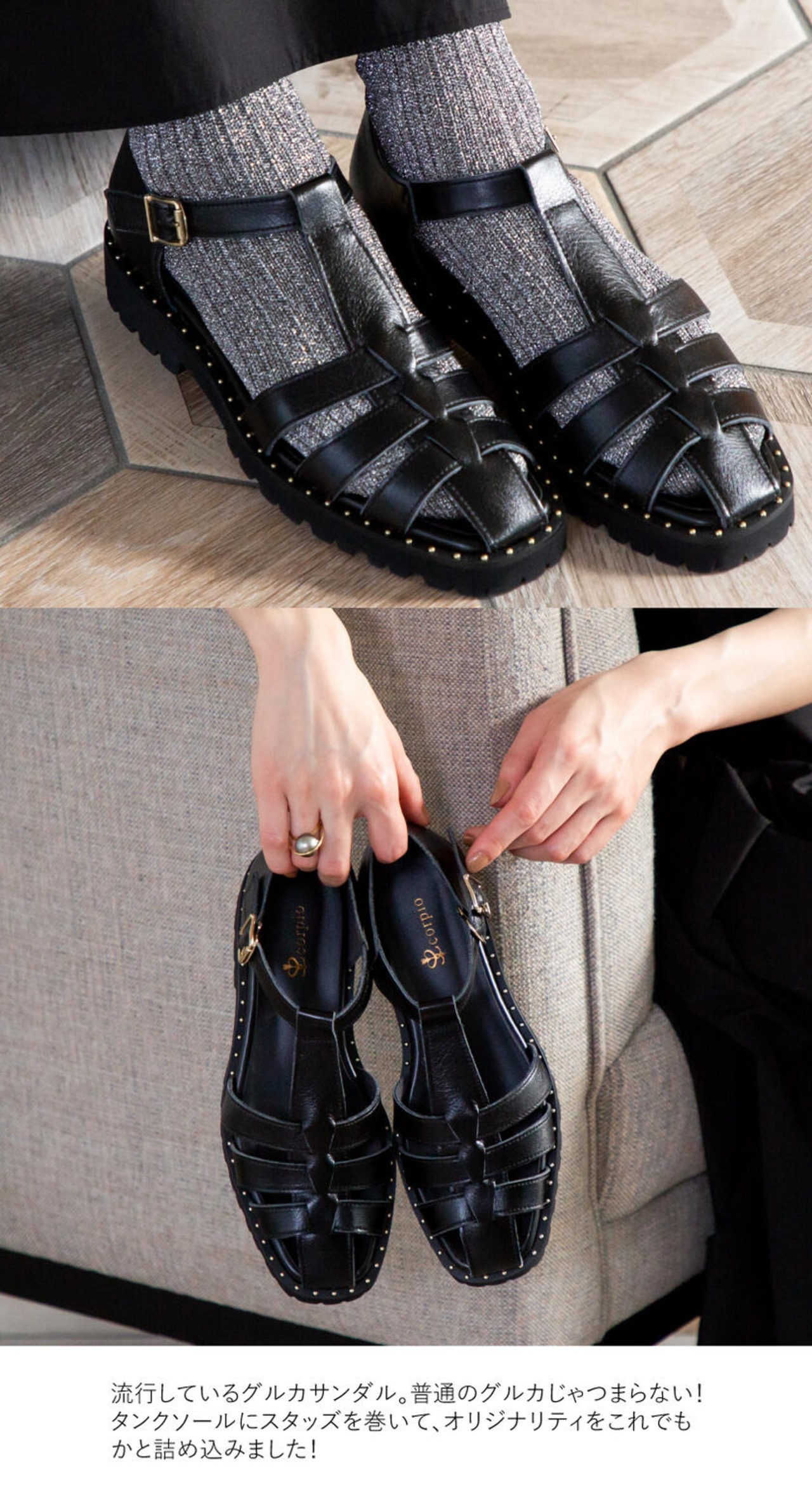 【SCORPIUS】 スコーピウス スタッズ グルカサンダル 本革 レディース 厚底 3cm ヒール 幅広 歩きやすい 2E 日本製 おじ靴 黒 白