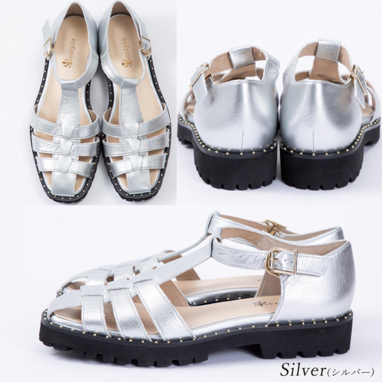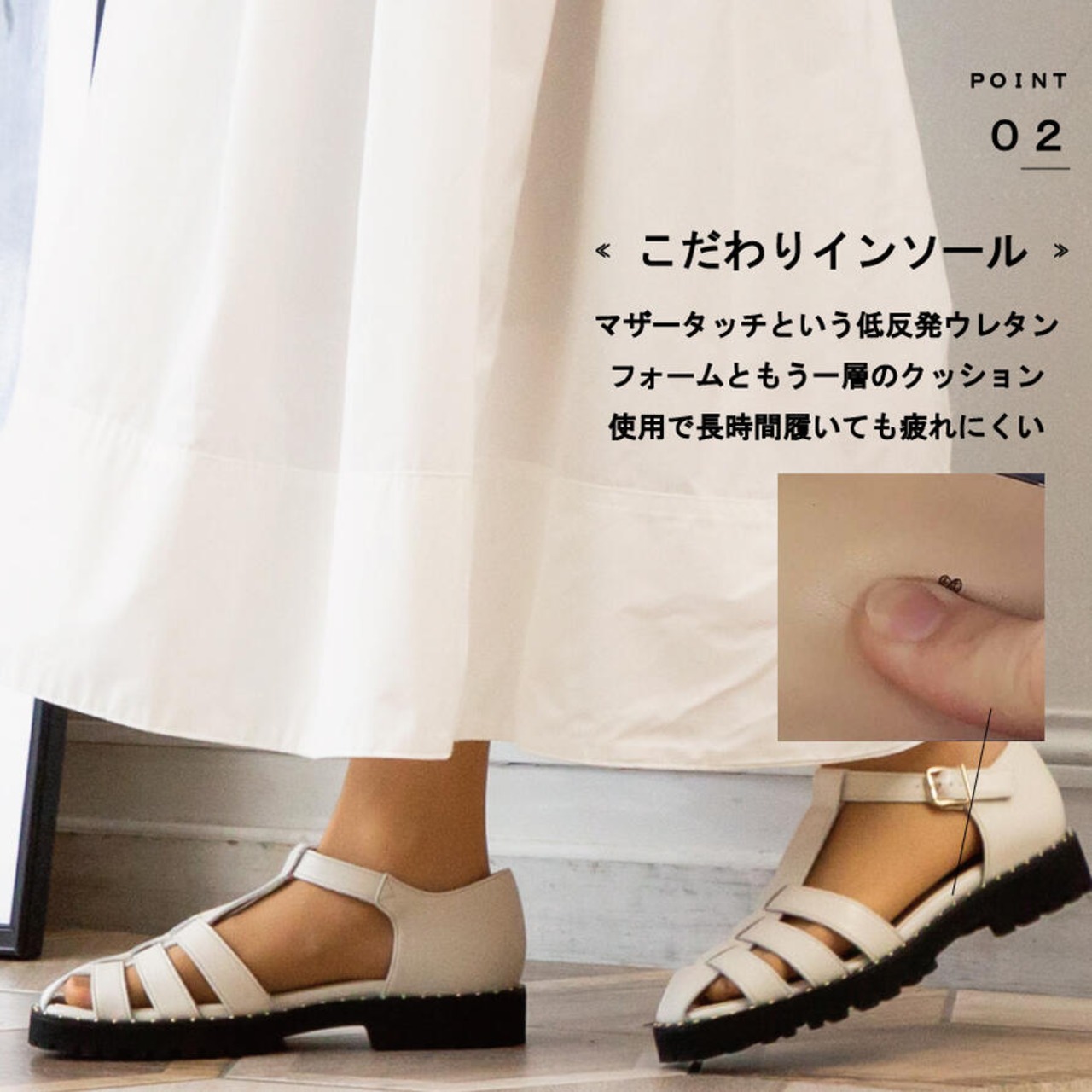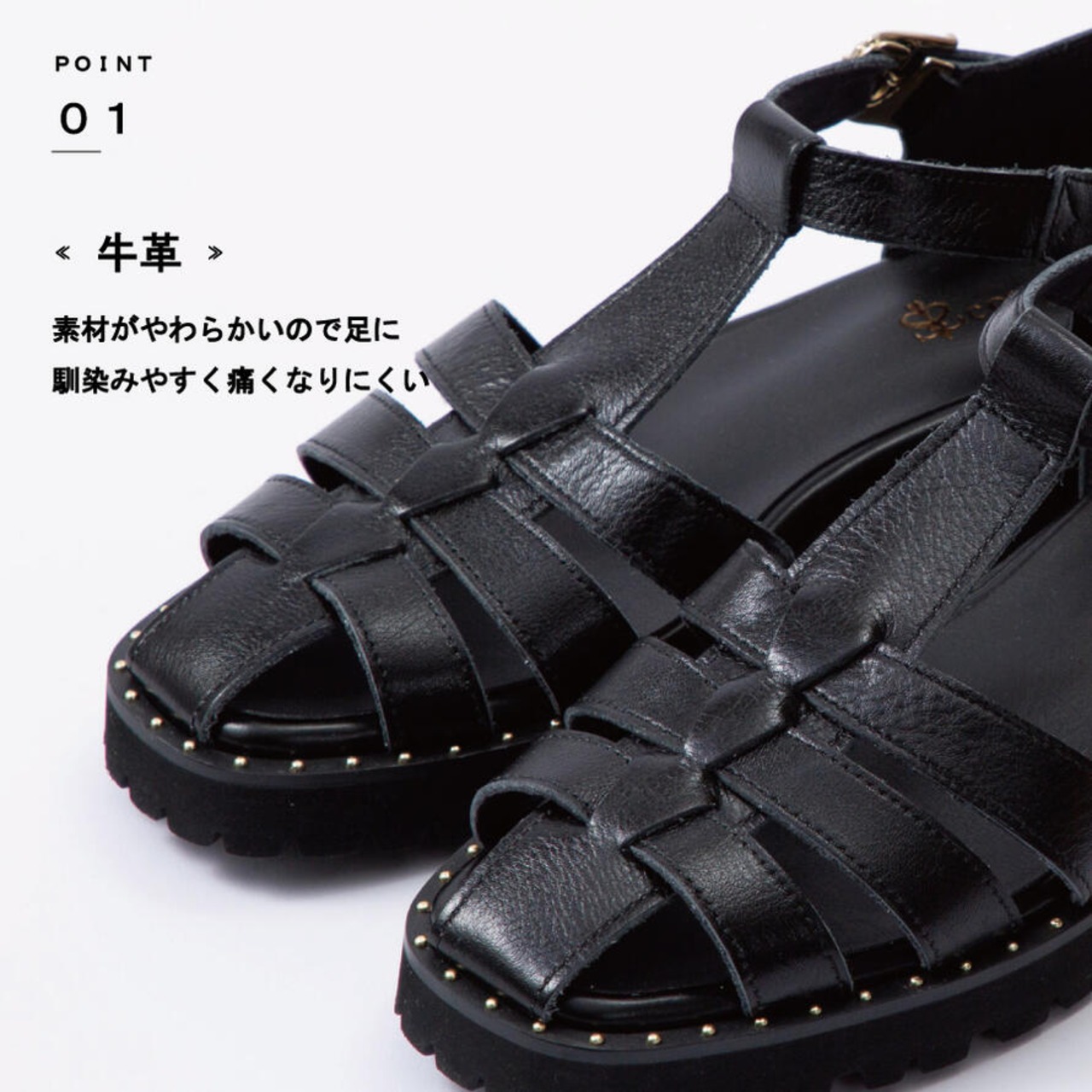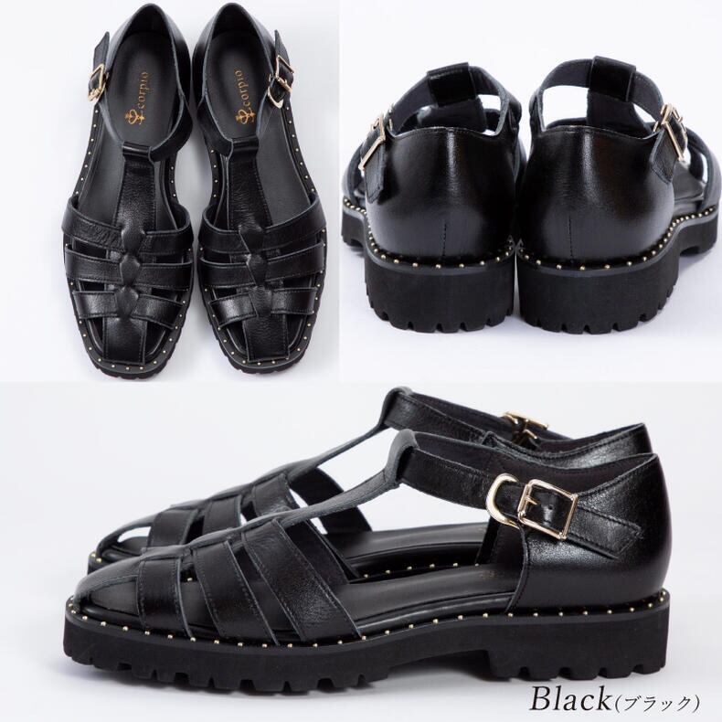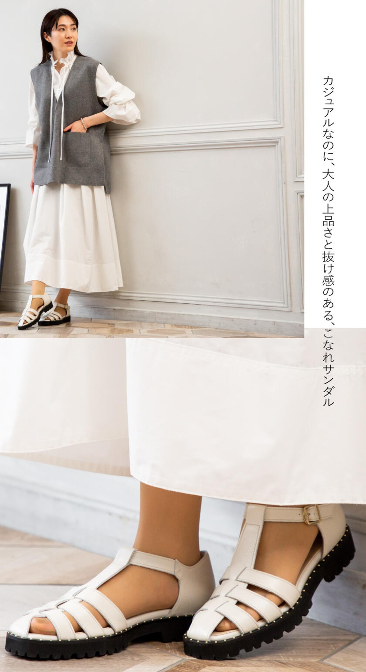 【SCORPIUS】 スコーピウス スタッズ グルカサンダル 本革 レディース 厚底 3cm ヒール 幅広 歩きやすい 2E 日本製 おじ靴 黒 白