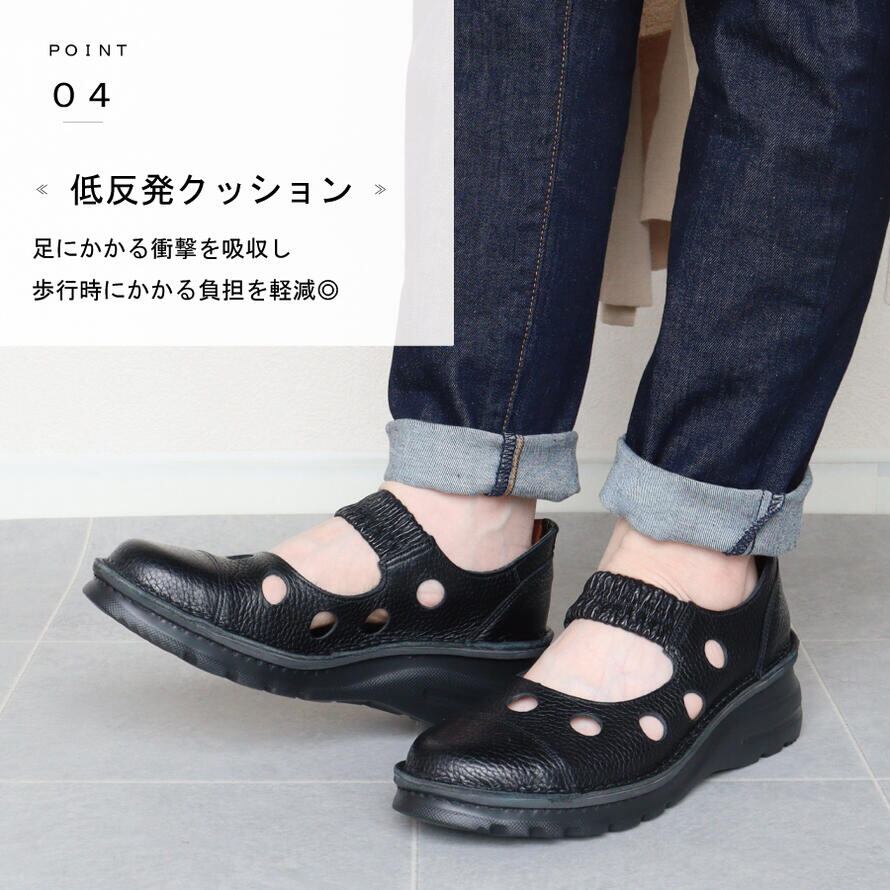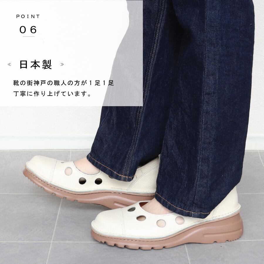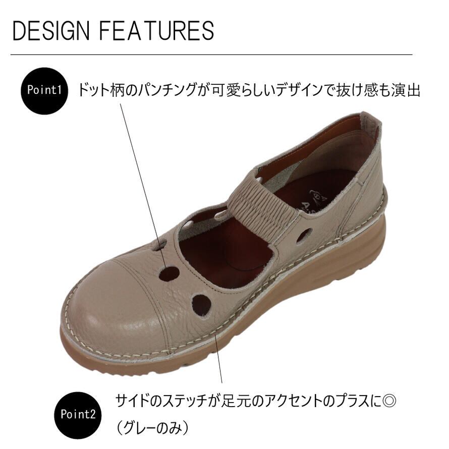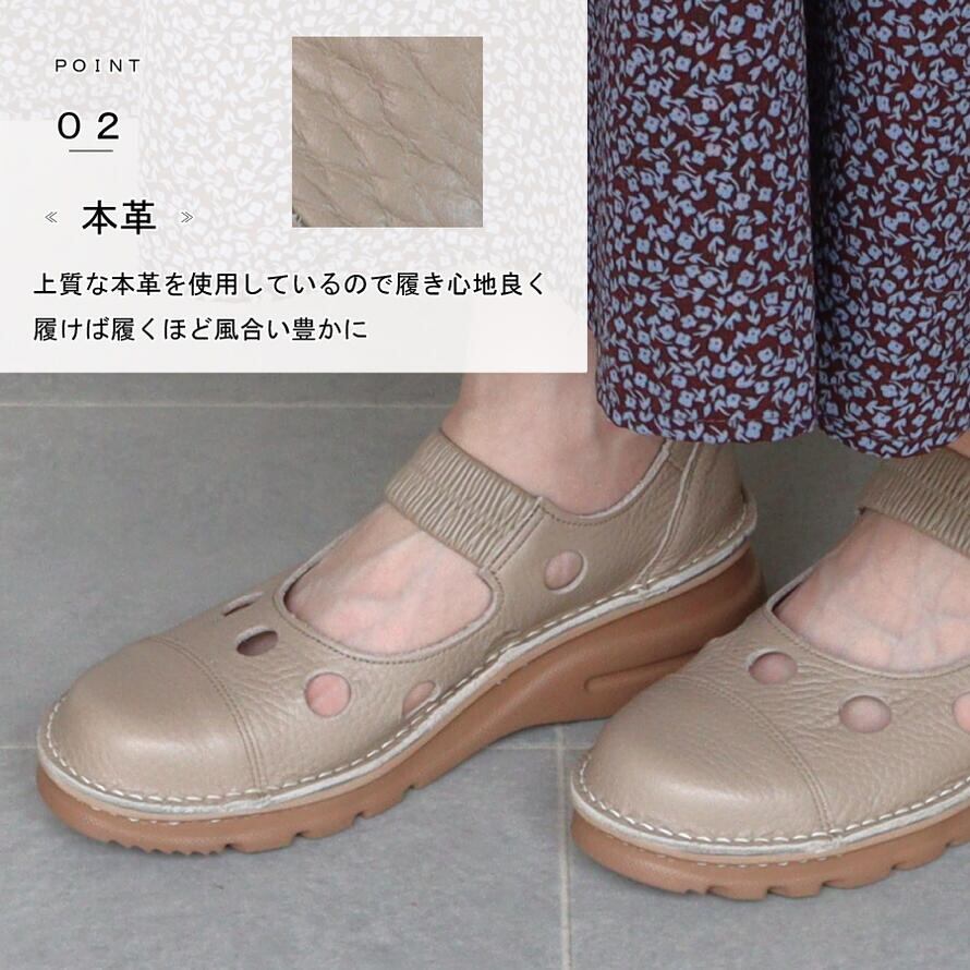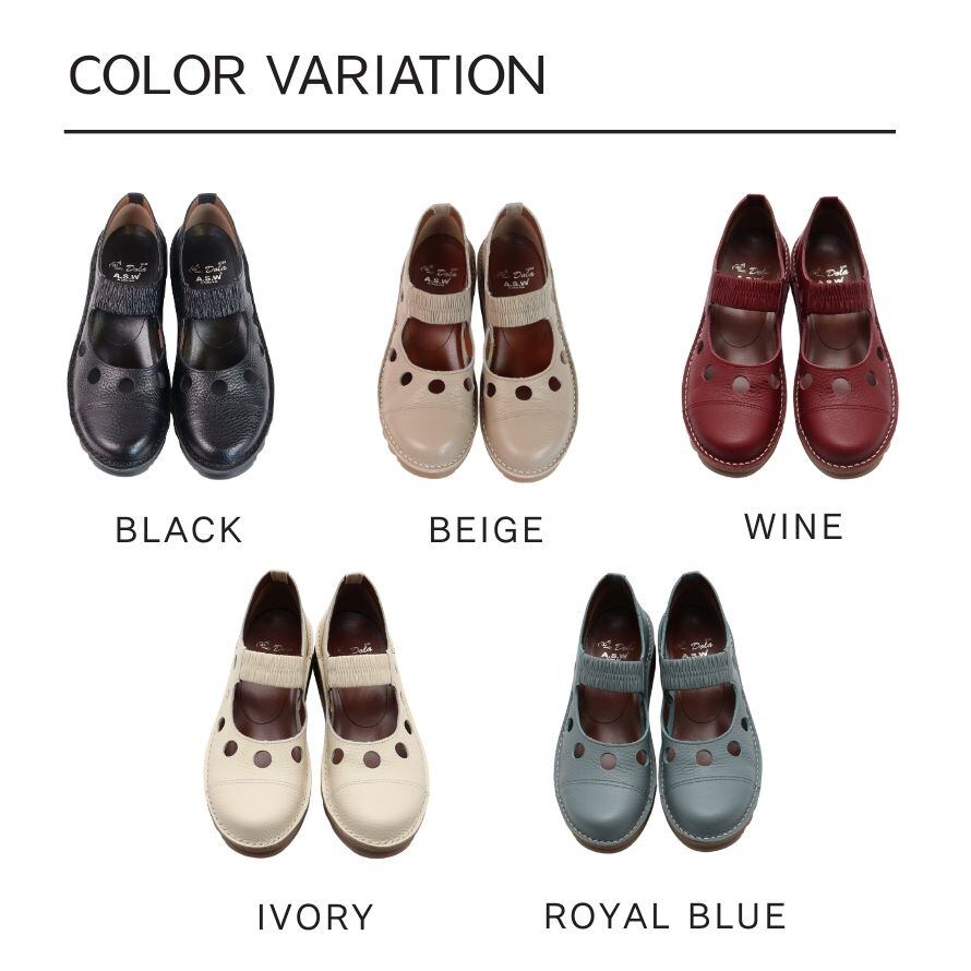 【日本製】 パンチング ストラップ スリッポン 本革 ゴム紐 シューズ 4E レザー スニーカー レディース 軽量 甲高 幅広 外反母趾 ヒール 5cm 黒 asw dola ベージュ 21.5cm