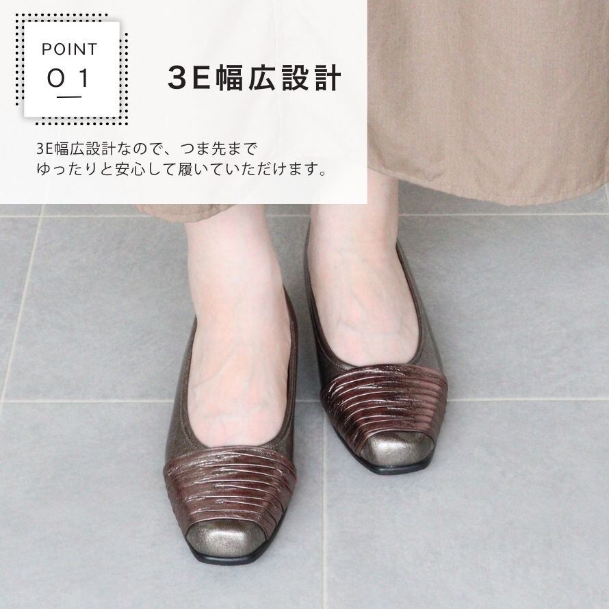 ★マラソンMAX1000円OFF! 【日本製】HS エナメル ターバン パンプス レディース ウェッジソール 3E 幅広 痛くない ブラック グレー 3cmヒール ブラック 22.0cm