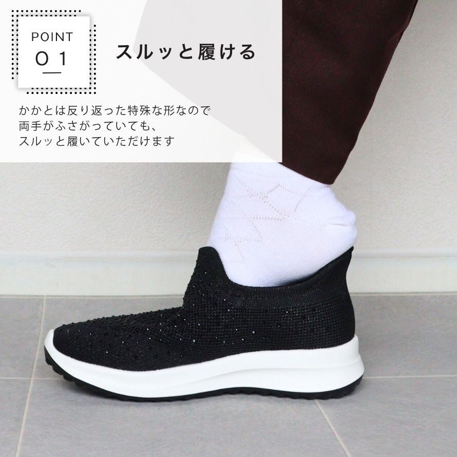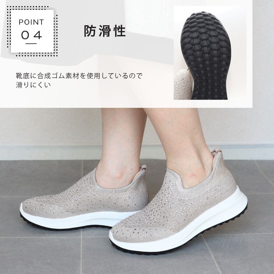 ★マラソンMAX1000円OFF! キラキラストーン スリッポンスニーカー レディース 幅広 3E ニット素材 軽量 歩きやすい 疲れにくい クッションソール 滑りにくい 手を使わず履ける きれいめ 大人 カジュアル 靴 ベージュ 35(22.5cm)